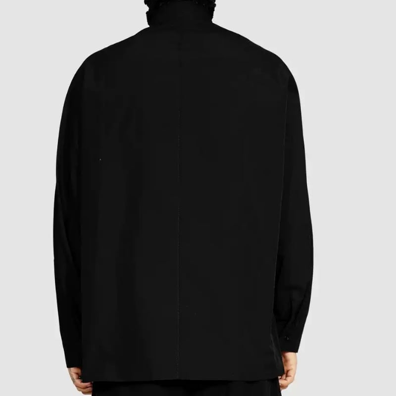 トーンオントーンの刺繍が洗練された印象を与えるスタンドカラーシャツ。シックな黒地に浮かび上がる立体的な花柄刺繍が上質感を演出し、シンプルながらも存在感のある一着。落ち着いたデザインとリラックスしたシルエットで、カジュアルからモードスタイルまで幅広く対応。特別な日のコーディネートから普段使いまで活躍するワードローブの定番アイテムです。