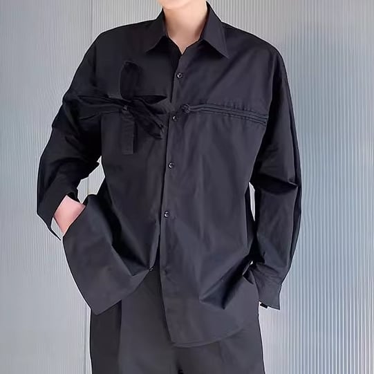 装飾リボン付きオーバーサイズロングスリーブシャツ 1color MTO0288