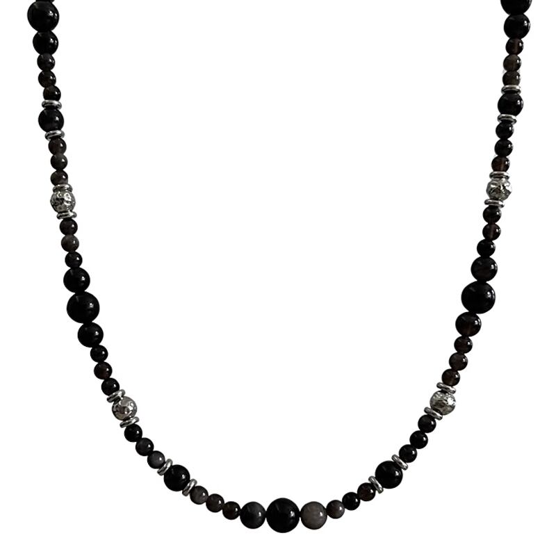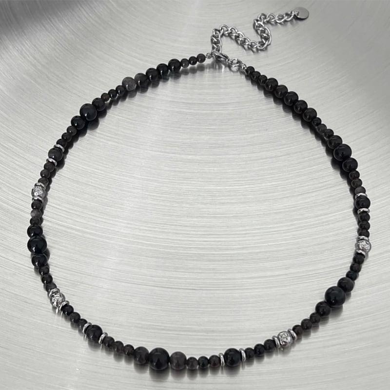 ブラックビーズとシルバーメタルの組み合わせが、シンプルながらも個性を主張します。
