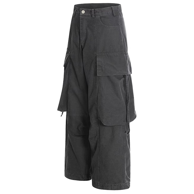 ハイウエストデザインとワイドレッグシルエットが特徴的なデニムカーゴパンツ。