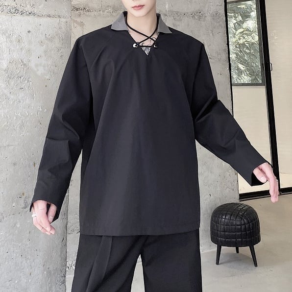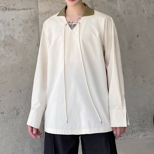 ドローストリングVネックオーバーサイズシャツ 1color MTO0345