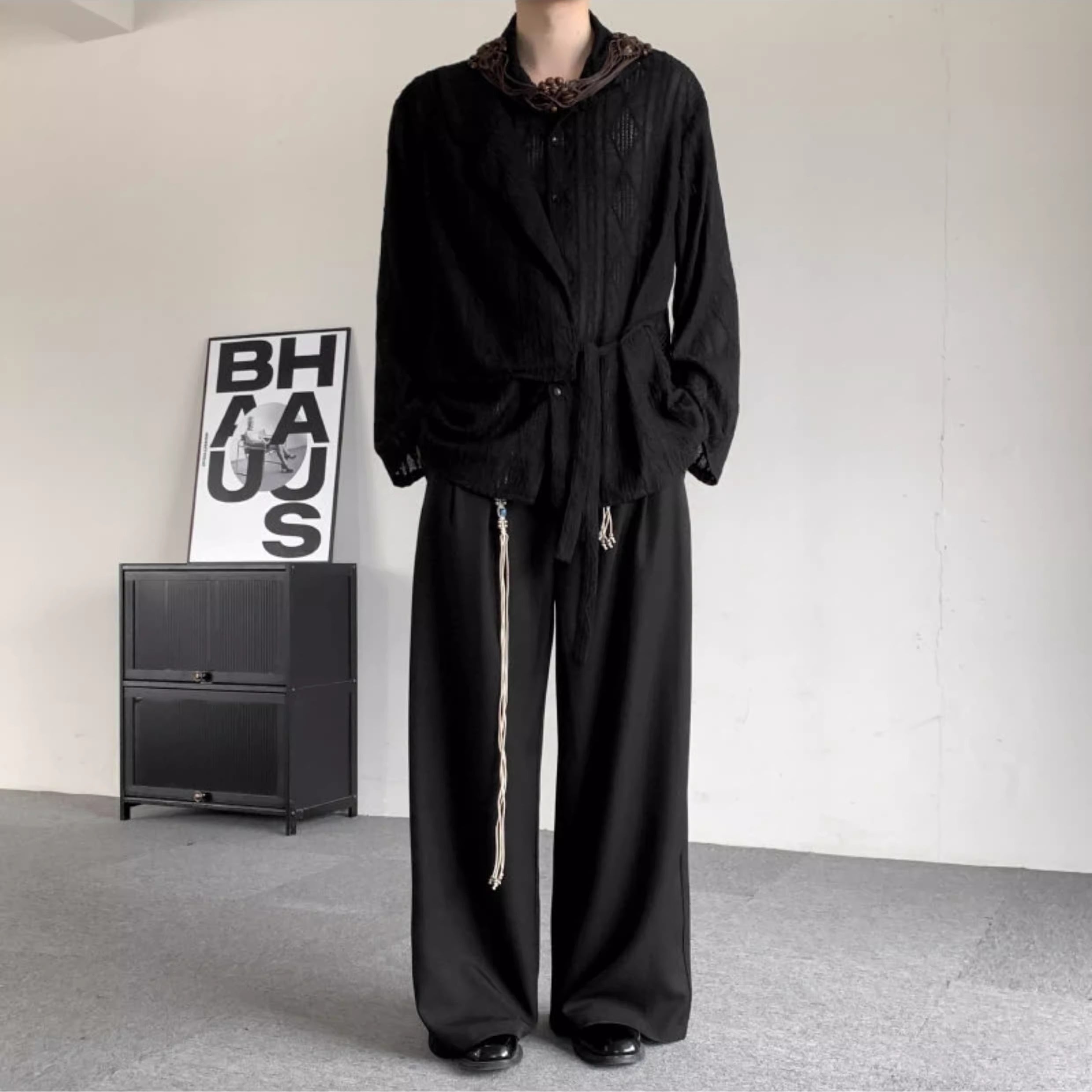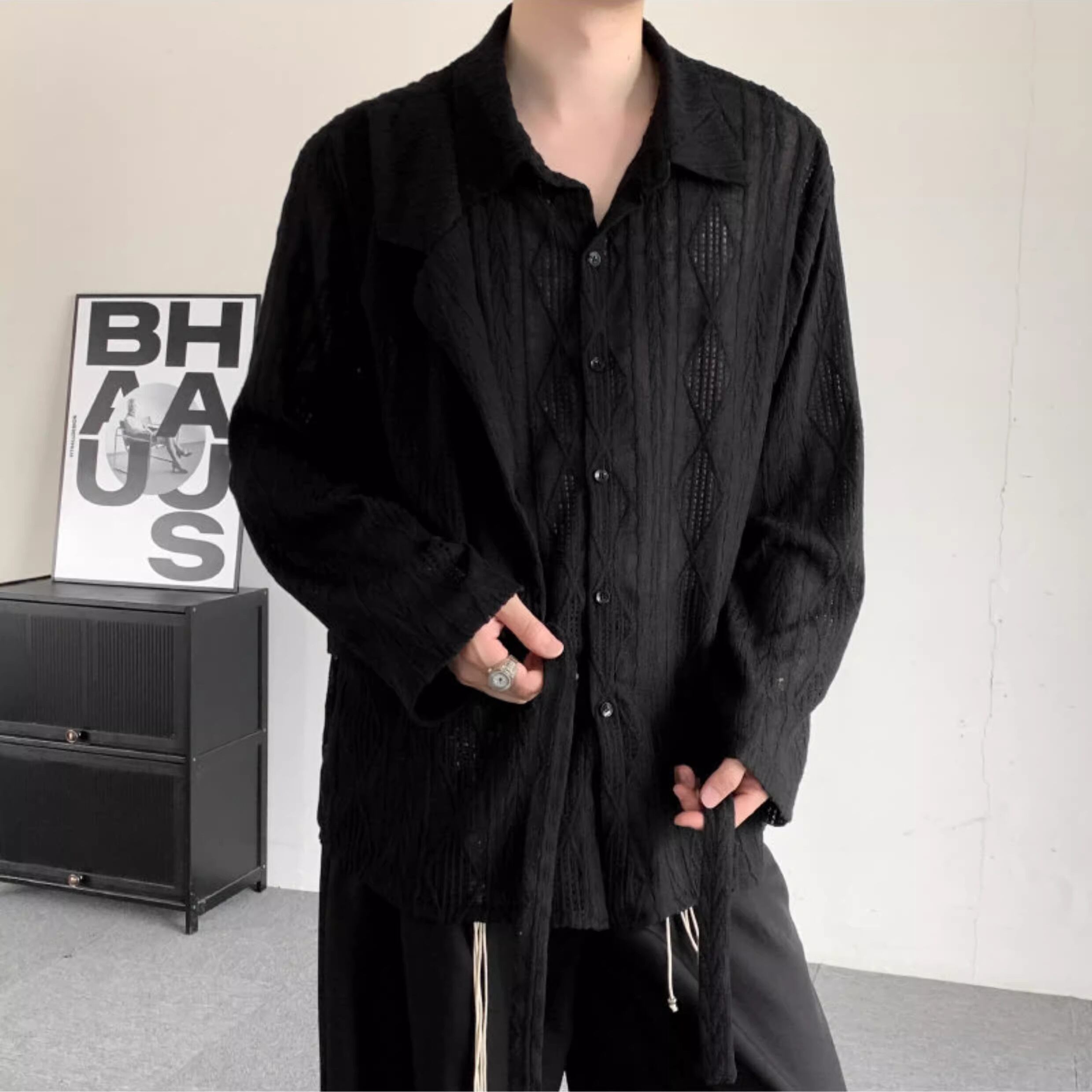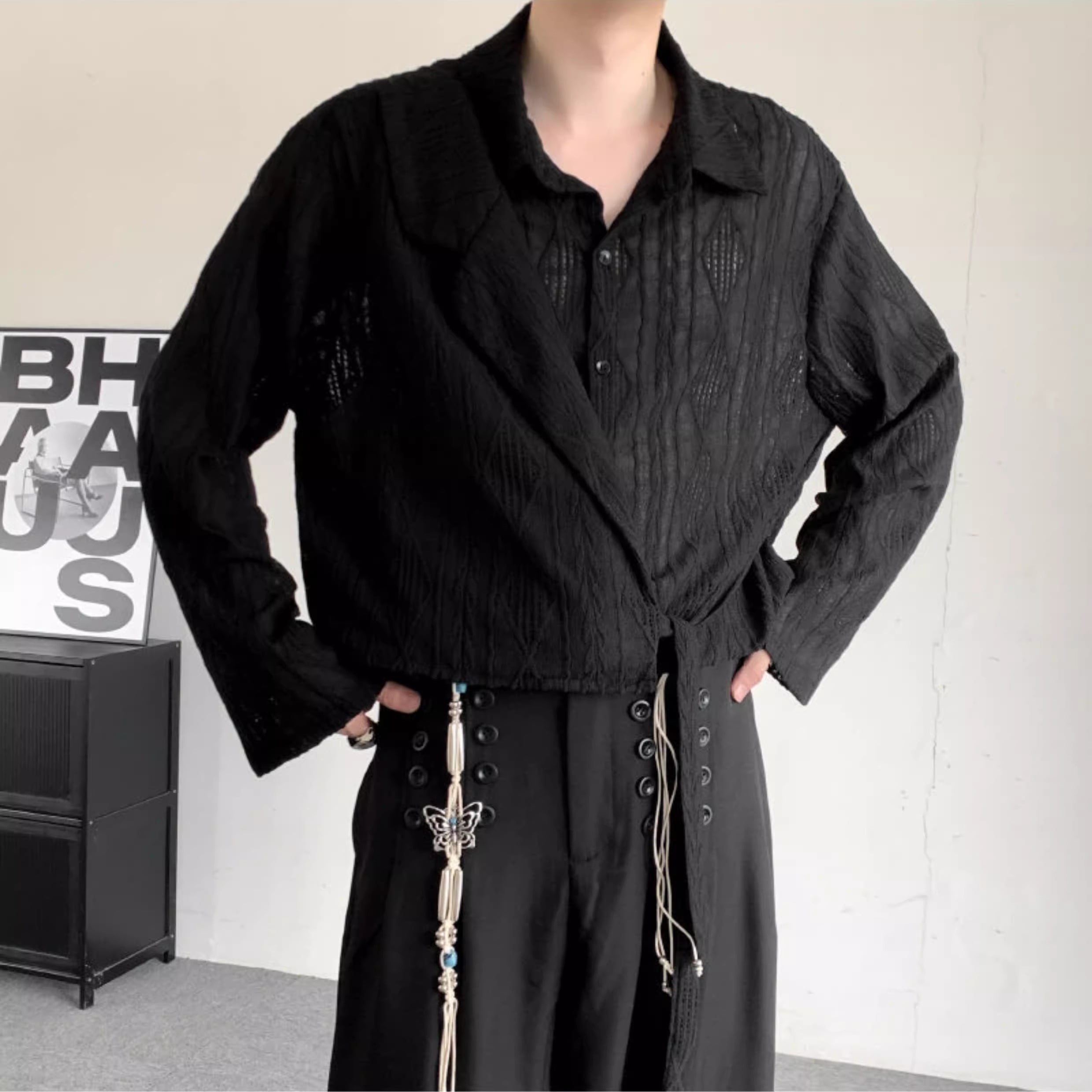 ウエストベルト付き透かし編みシャツ 1color MTO0350