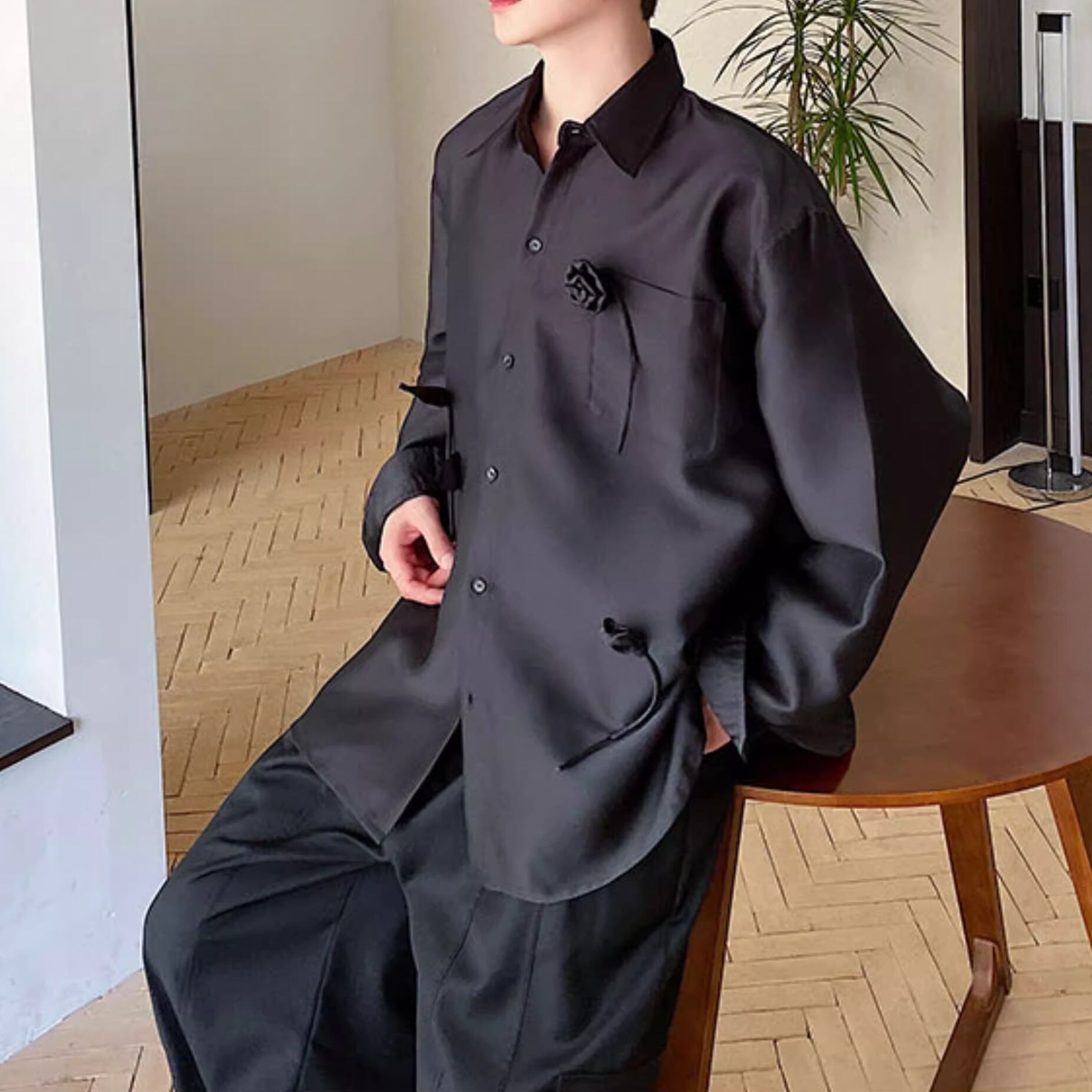フラワーモチーフサテンシャツ 2color MTO0351