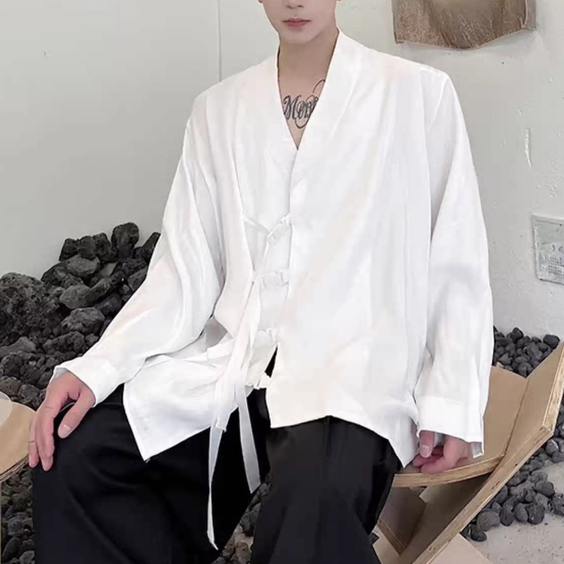ノーカラーベルト付きオーバーサイズロングシャツ 2color MTO0357