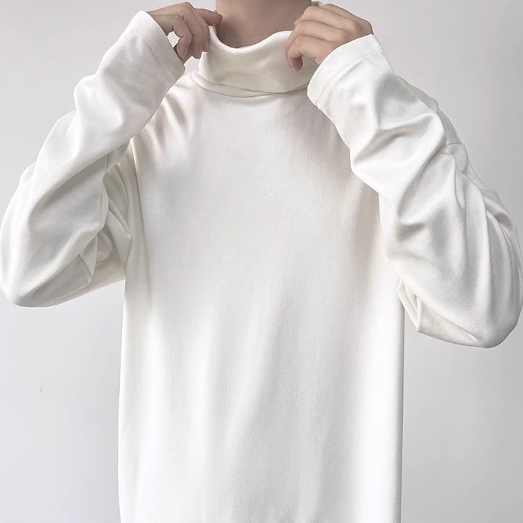 サイドボタンスリットロングタートルネックトップス 2color MTO0368