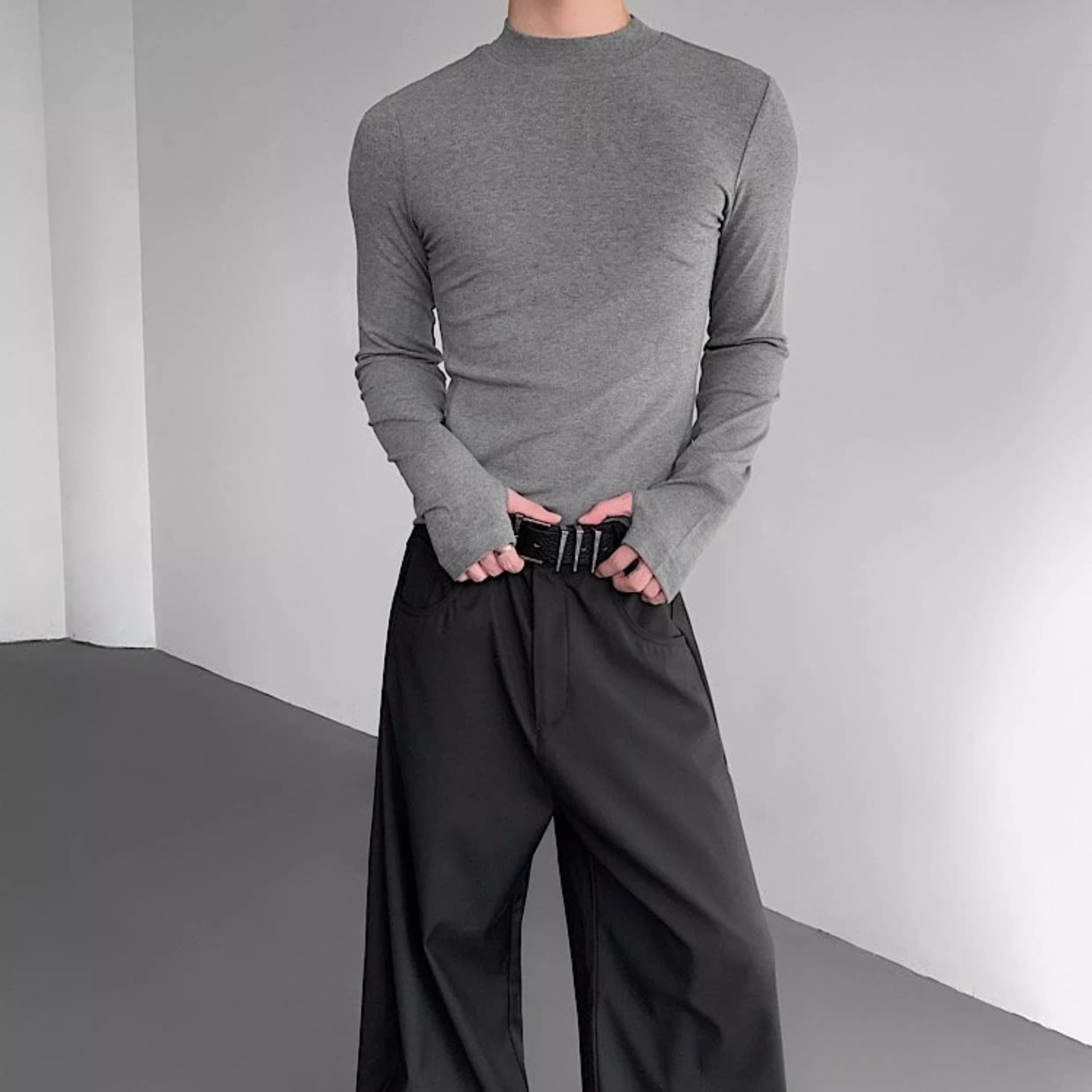 サムホール付きボトルネックロングスリーブ。ミニマルなデザインが、どんなスタイルにも自然と溶け込みます。