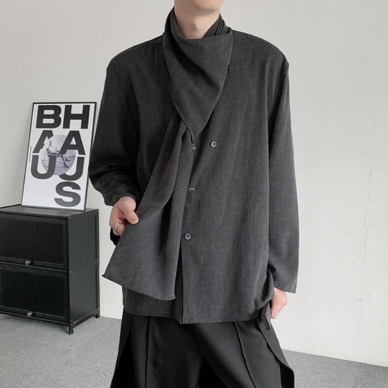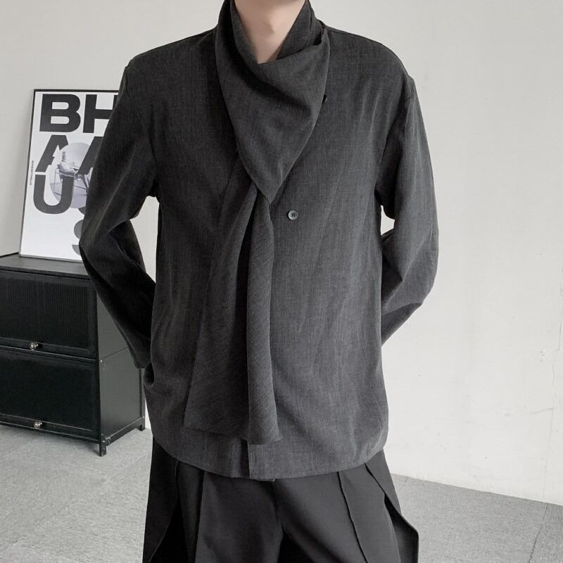 首元のスカーフがデザインされた、モダンで洗練されたシャツ。ミニマルなデザインにスカーフがアクセントを加え、着こなしに個性をプラスします。シンプルなパンツと合わせて、都会的でスタイリッシュなコーディネートを演出できます。