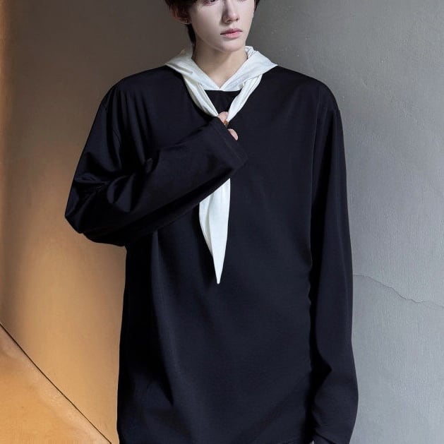 フード付きスカーフデザインロングスリーブプルオーバー 2color MTO0418