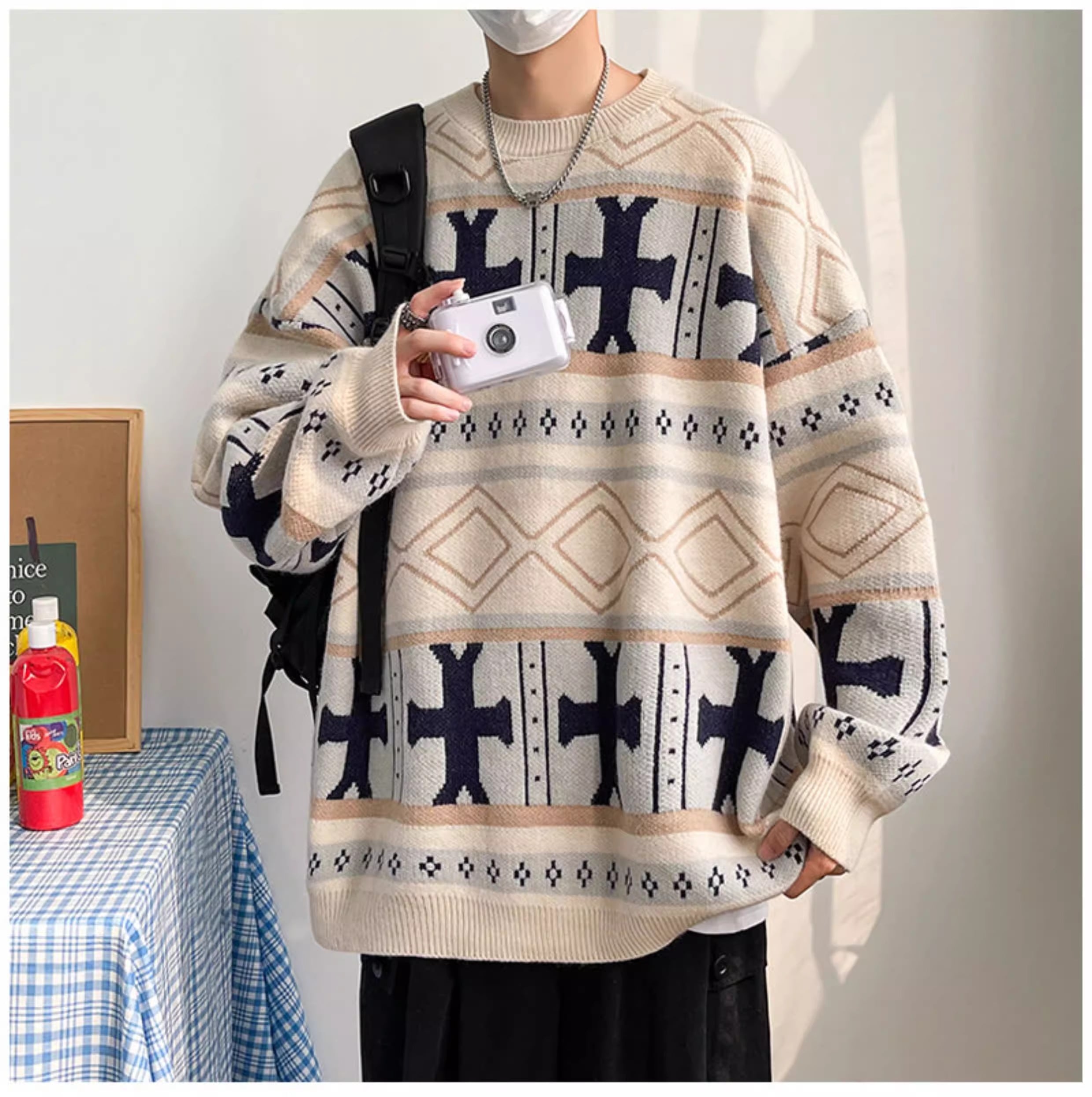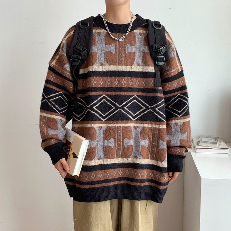 ノルディック風幾何学柄オーバーサイズニットセーター 2color MTO0420