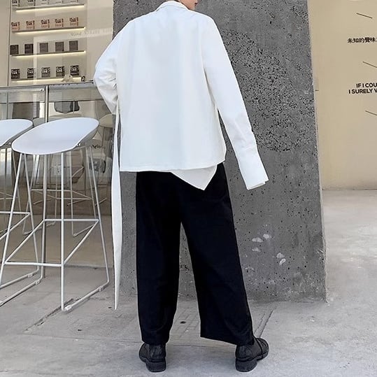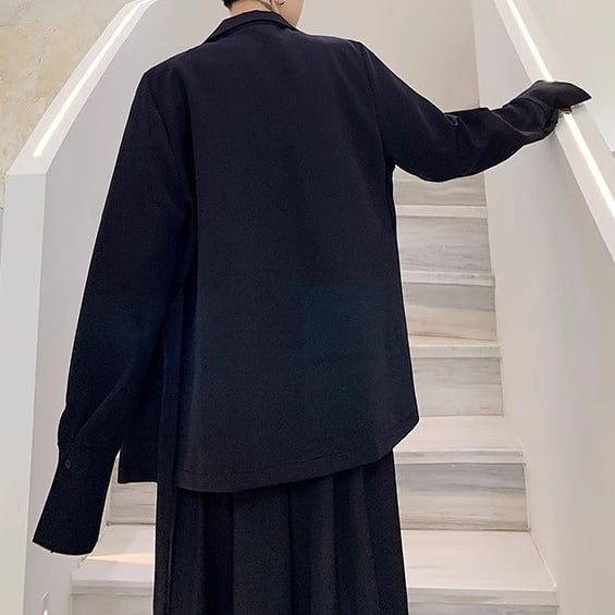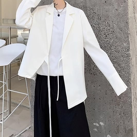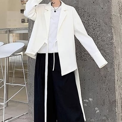 アシンメトリーヘム ロングスリーブ ベルト付きジャケット 1color MOJ0111