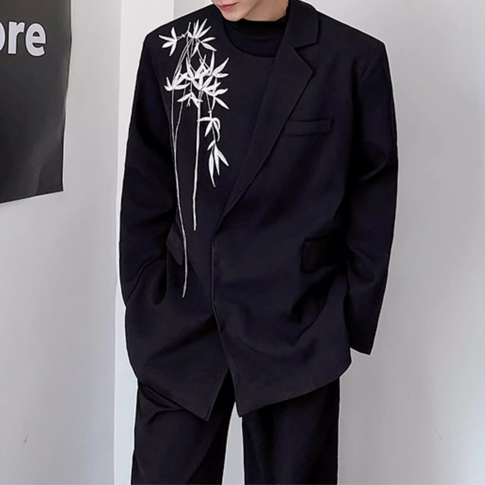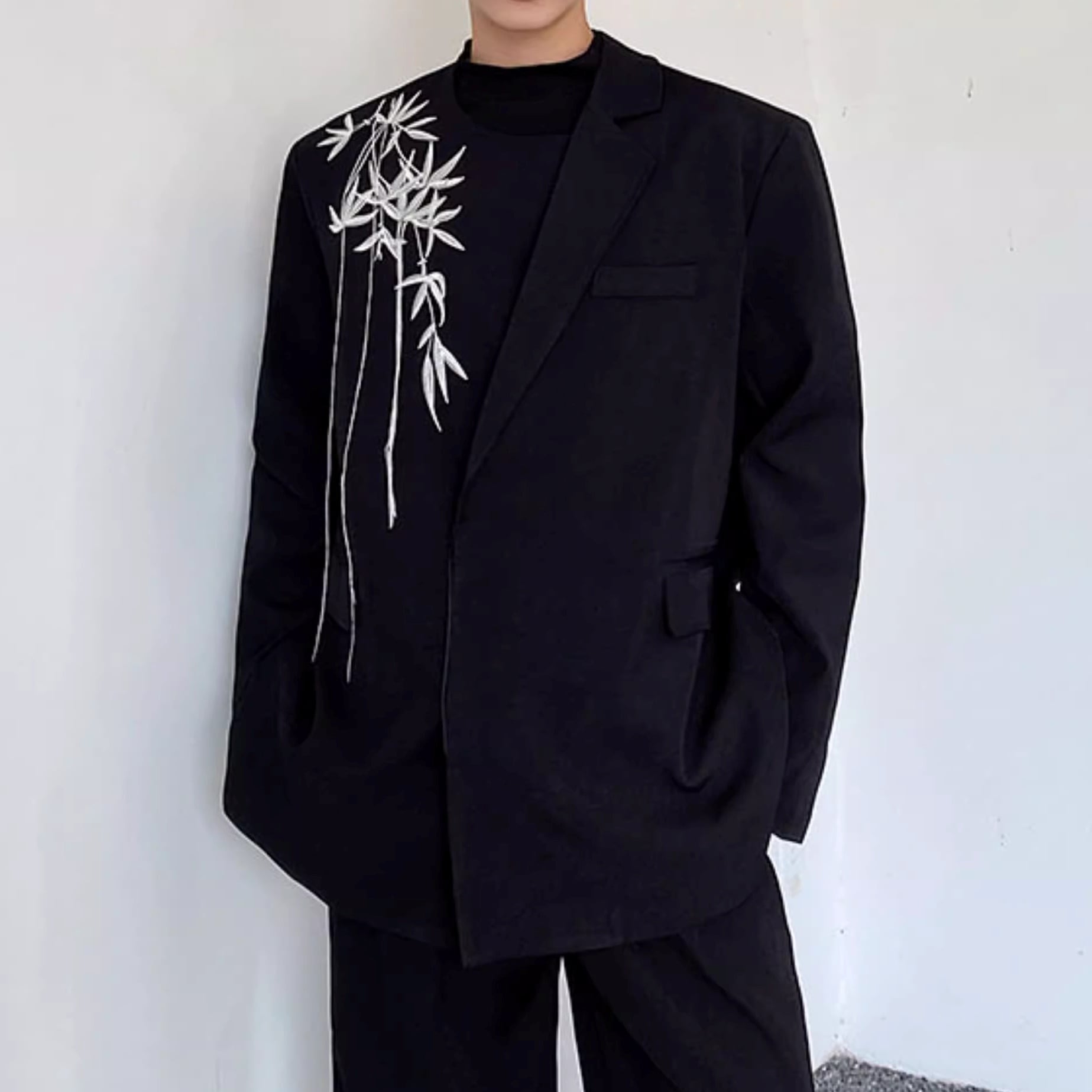 バンブー柄刺繍 テーラードジャケット オーバーサイズ 1color MOJ0115