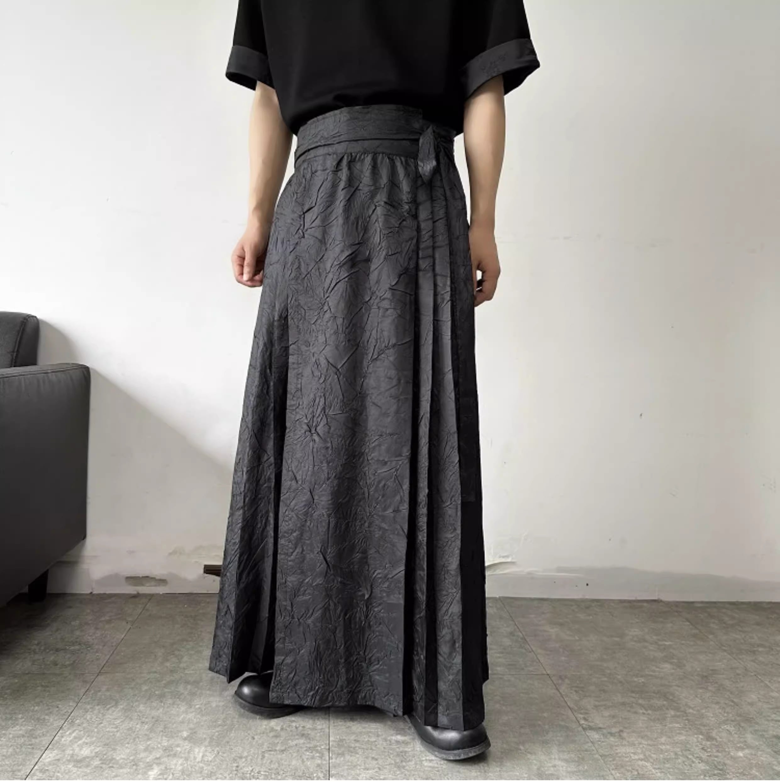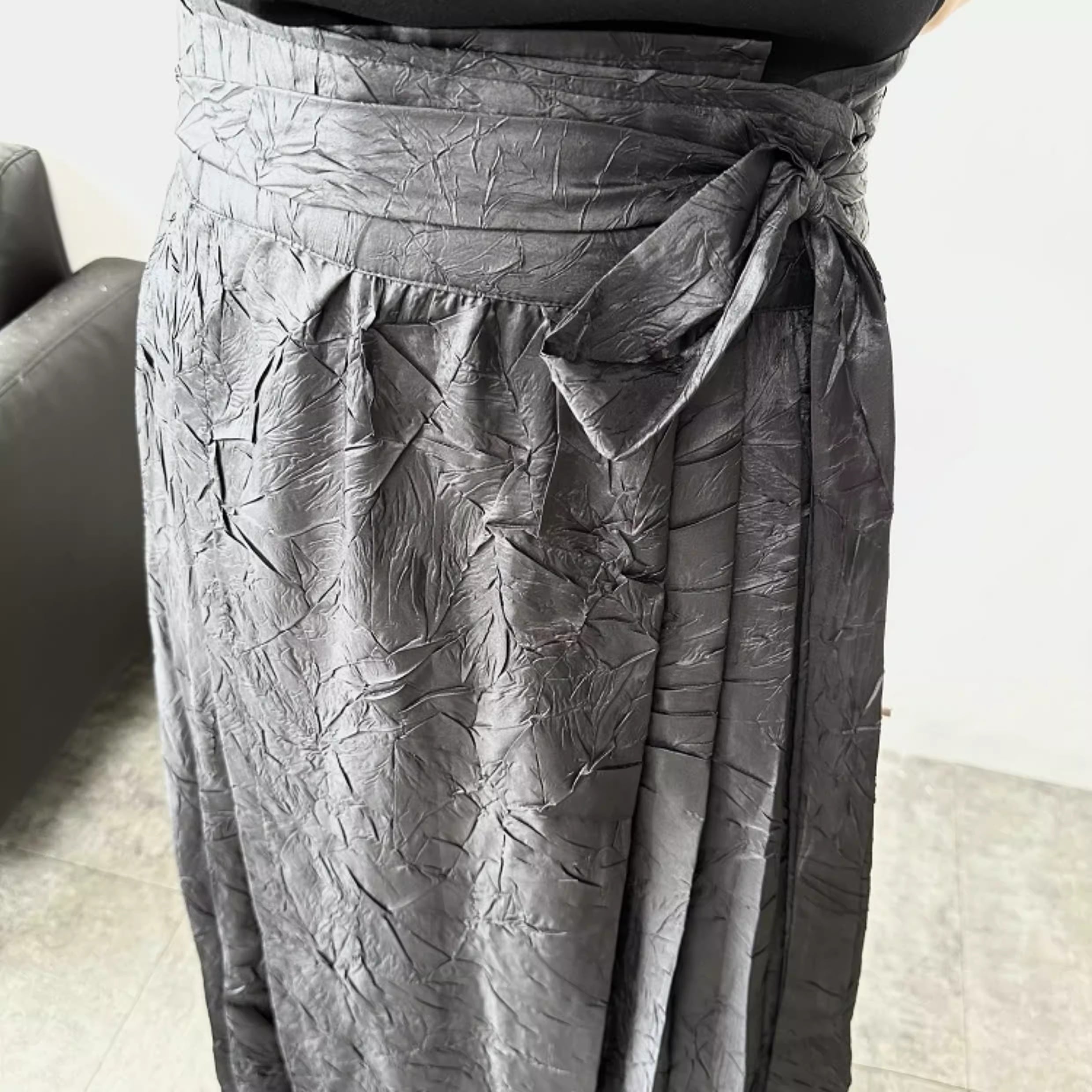 ワイドなシルエットと、腰回りのリボンがアクセントのラップボトムス。