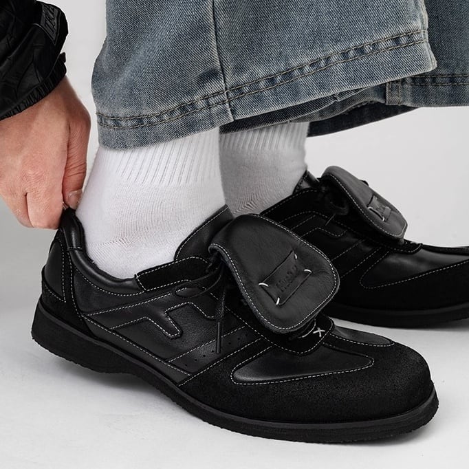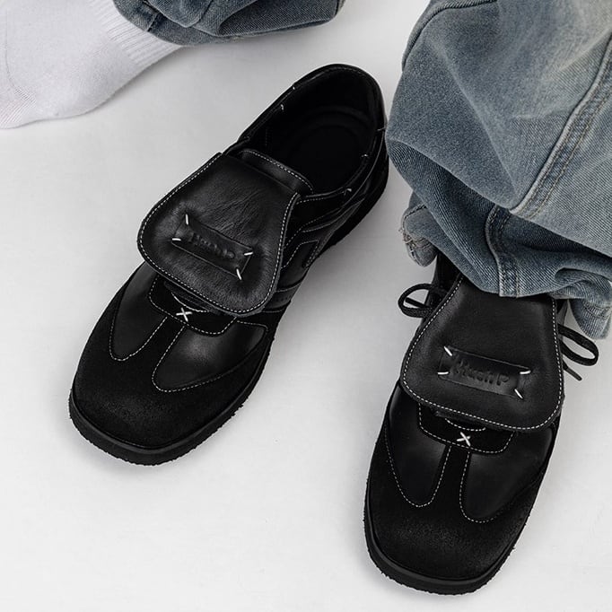 フラップ付きスエードレザーラウンドトゥローカットスニーカー 1color MSH0010