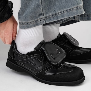 個性的なフラップが魅力のローカットスニーカー。ラウンドトゥのデザインが洗練された印象を与え、様々なスタイルに合わせやすいアイテムです。フラップは着脱可能な仕様で、気分に合わせてアレンジを楽しめます。普段使いはもちろん、カジュアルなデートやショッピングなど、様々なシーンで活躍します。