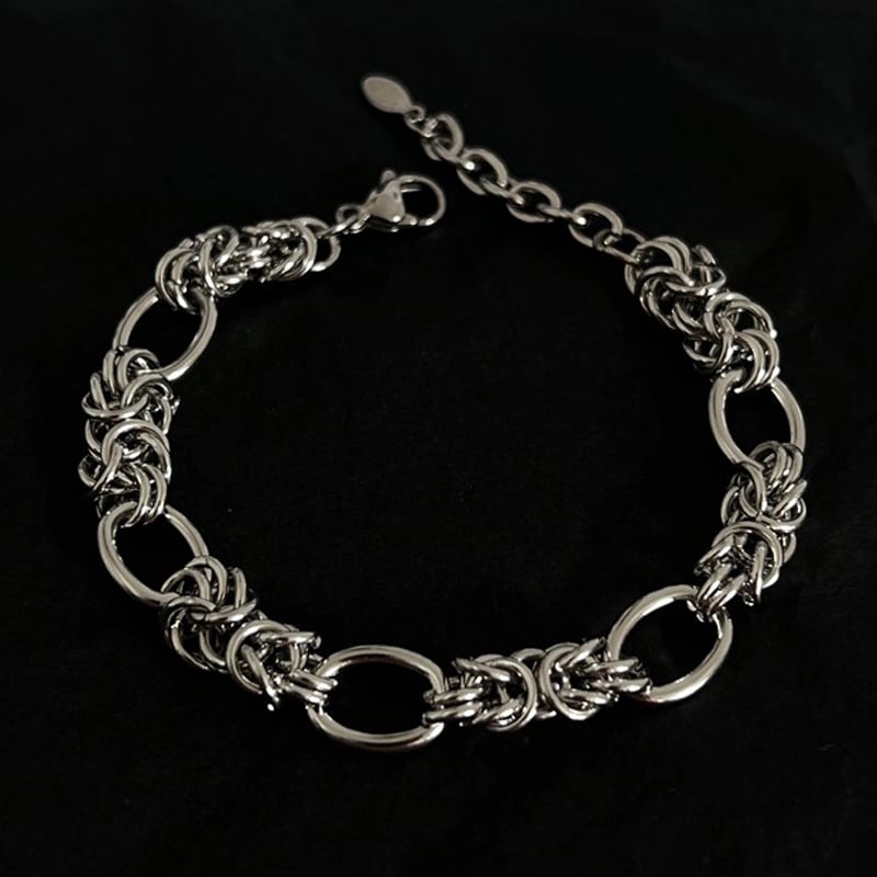 ビザンチンチェーンとオーバルリンクが織りなす、複雑で美しい模様が視線を集めます。