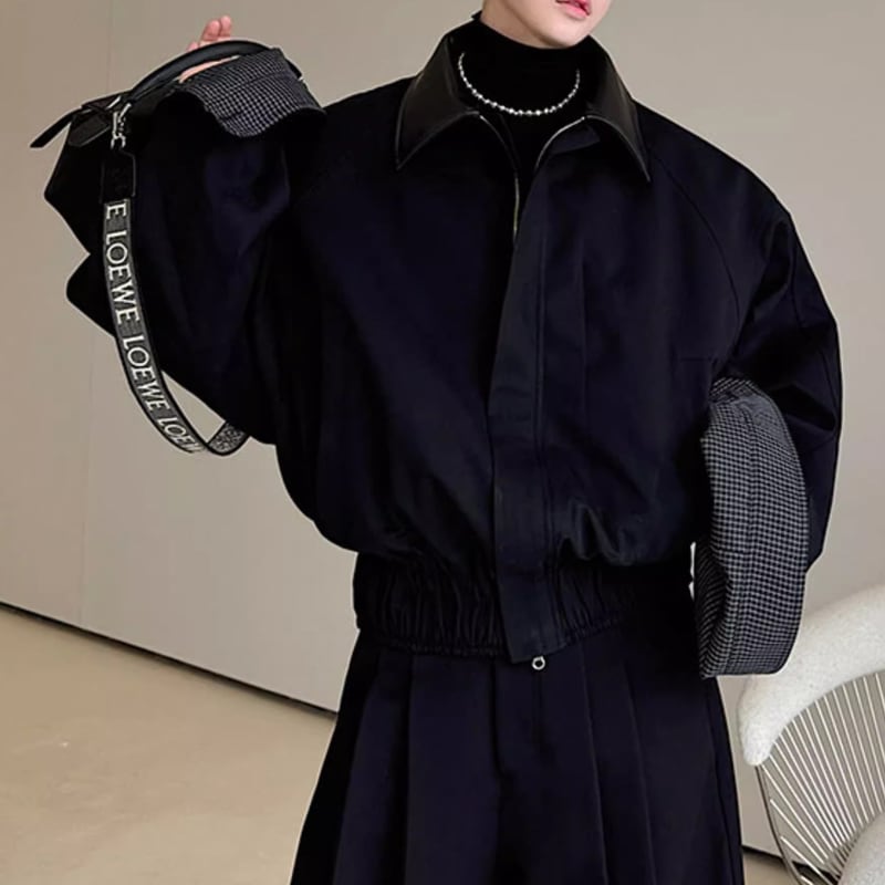 オープンカラー 長袖 クロップド ジップアップ ジャケット 2color MOJ0118