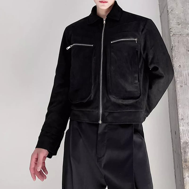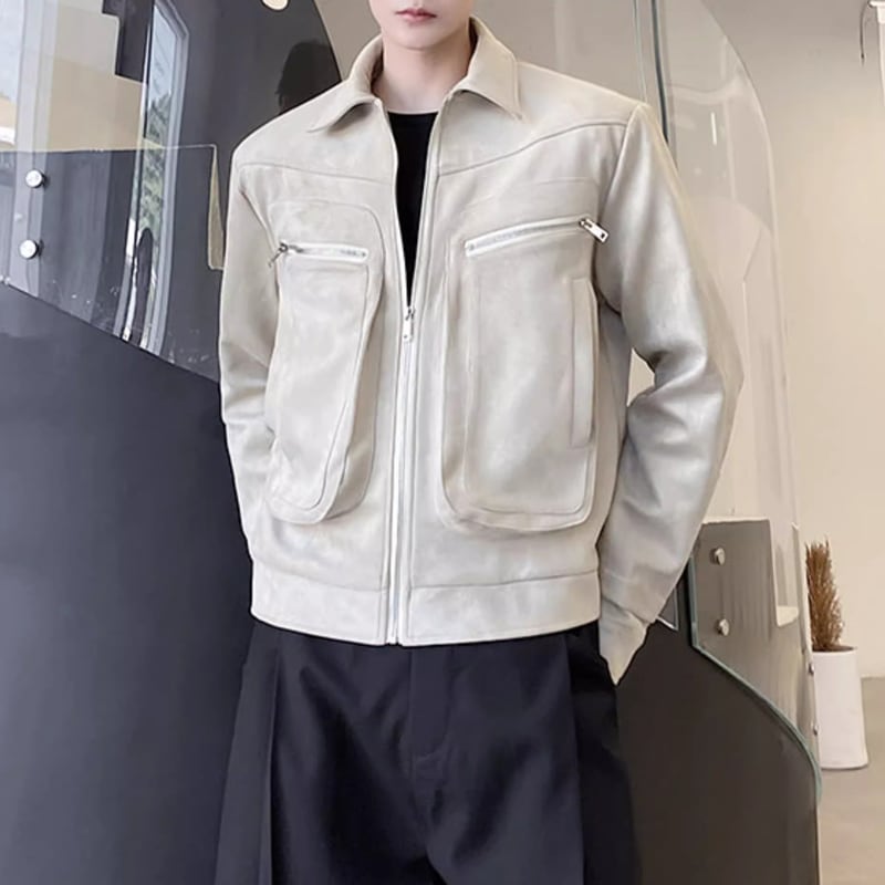 ジップアップ パッチポケット オープンカラー ジャケット 2color MOJ0132