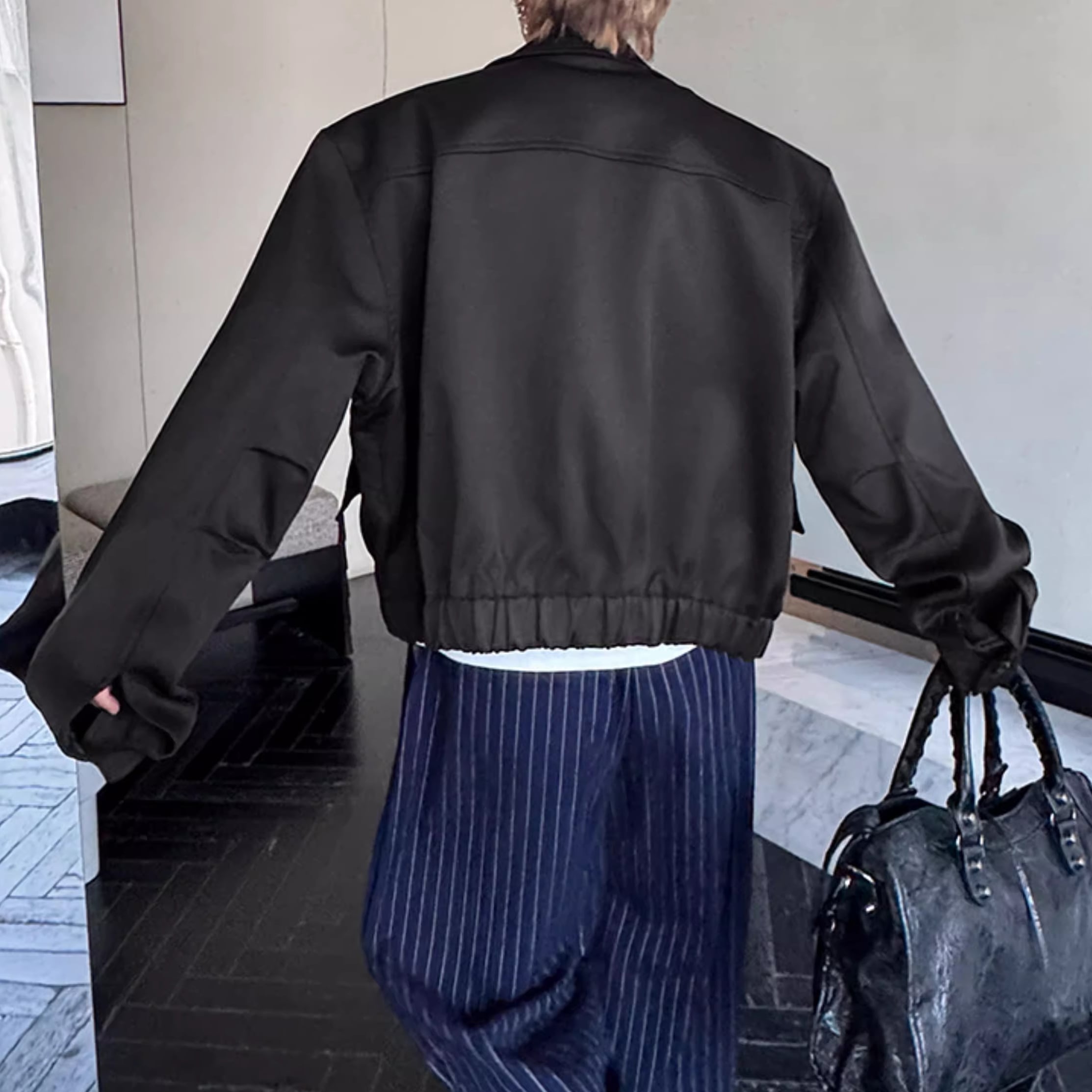 トレンド感のあるショート丈が、スタイルアップ効果を発揮するジャケット。