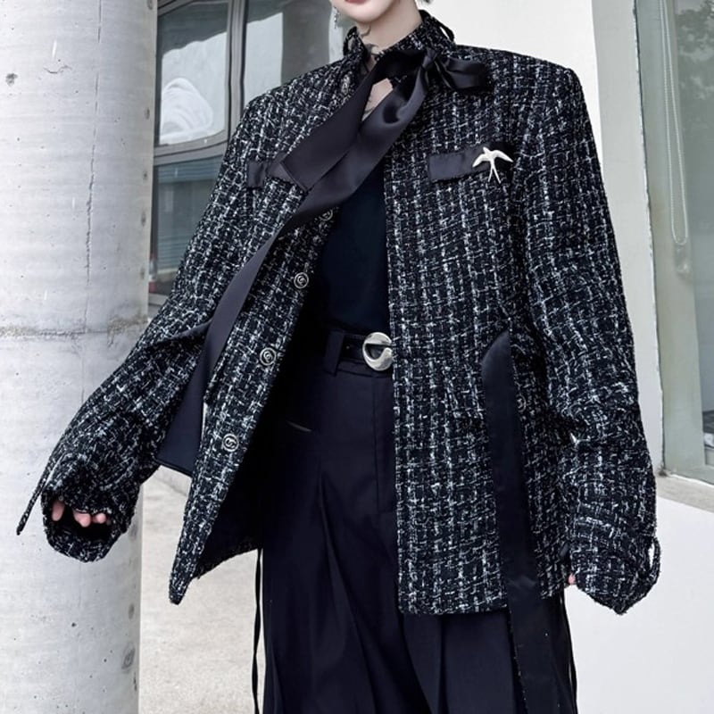 ボタンフロント ヒップ丈 ツイード調 ジャケット 1color MOJ0140