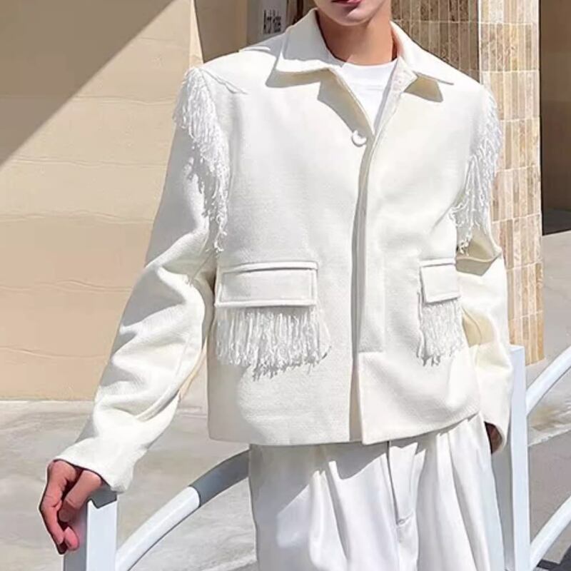 フリンジ 長袖 ショート丈 シャツジャケット 2color MOJ0143