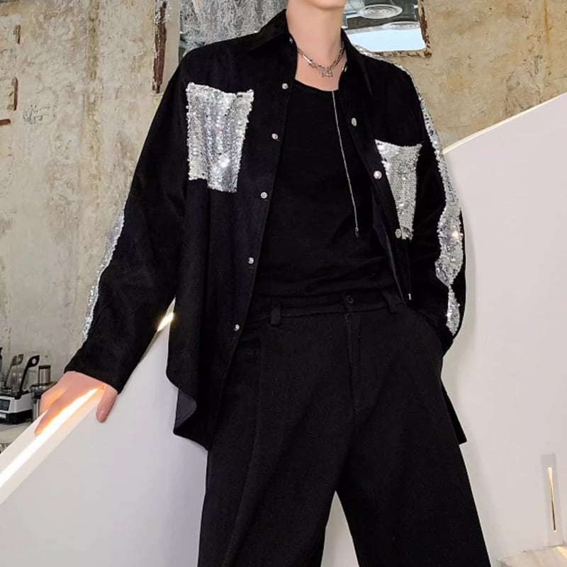 パッチ スパンコール オープンカラー 長袖シャツ 1color MOJ0160