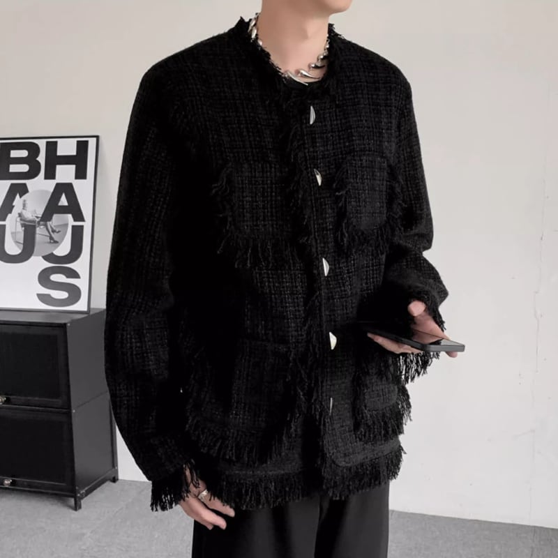 フリンジ パッチポケット ヒップ丈 長袖 ジャケット 1color MOJ0165