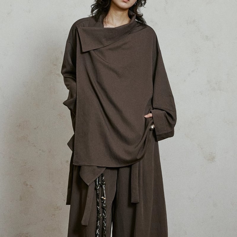 長袖 結びベルト付き オーバーサイズ トップス 2color MTO0421