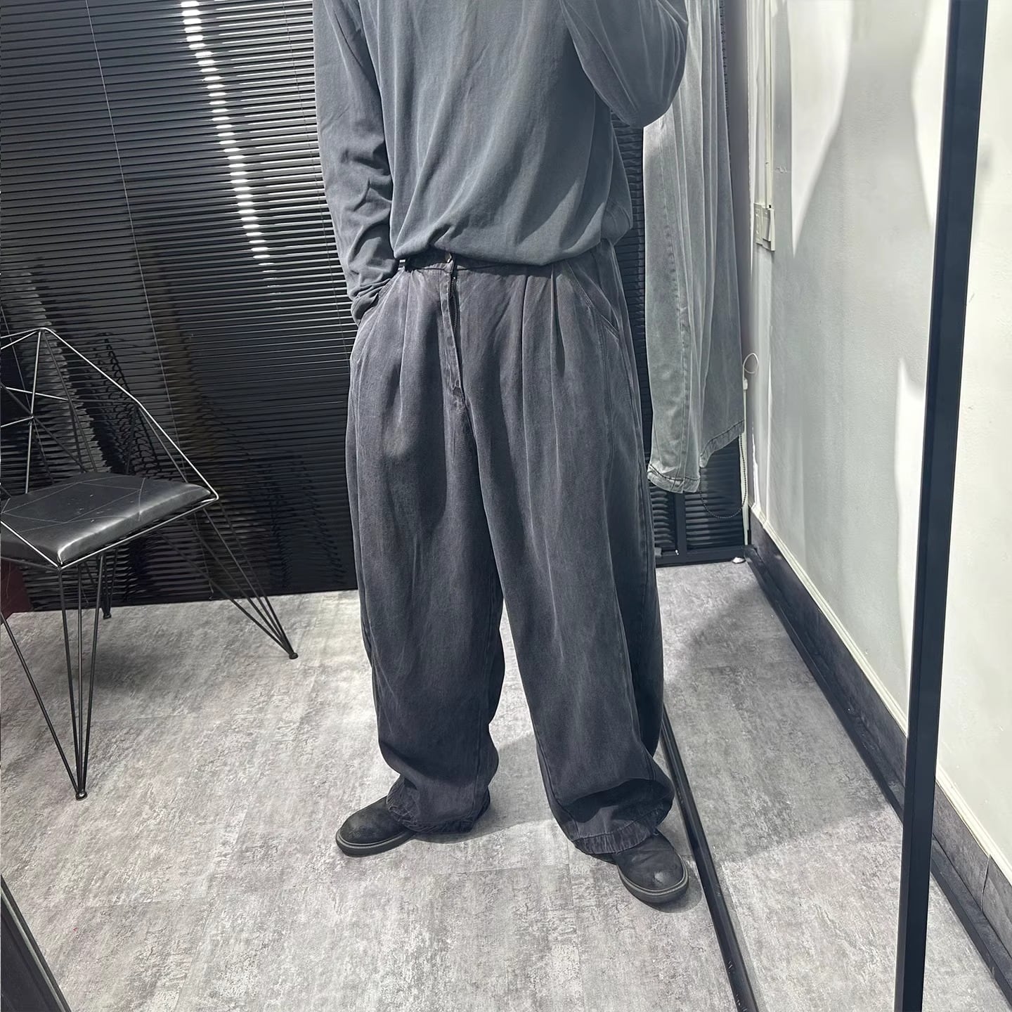深めのタックが印象的なワイドレッグパンツ。フルレングス丈で、ルーズなシルエットが抜け感を演出します。カジュアルなトップスと合わせて普段使いはもちろん、ジャケットと合わせてモードな着こなしも楽しめる、汎用性の高い一本です。