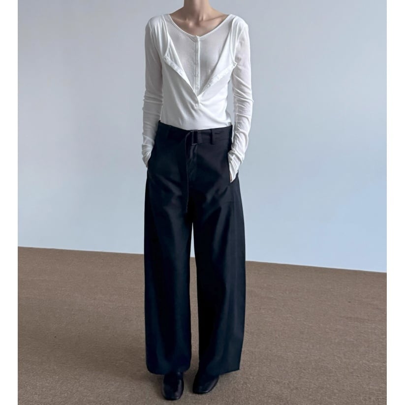 カジュアルながらも洗練された印象を与えるワイドパンツ。