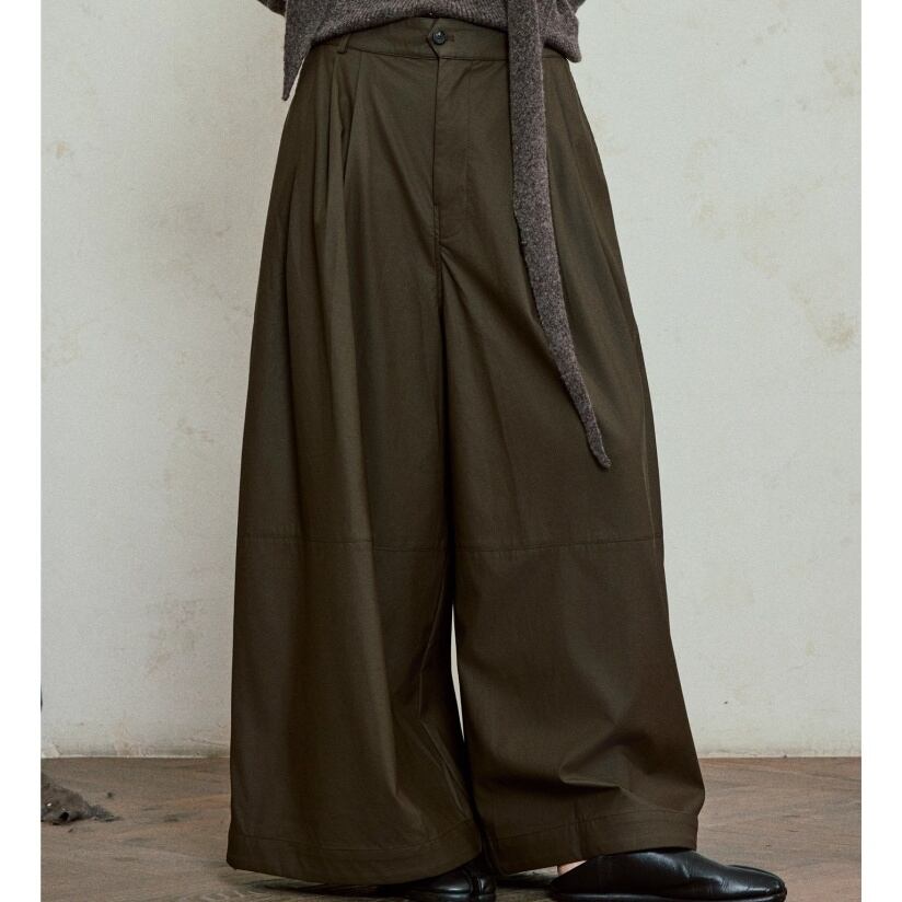 2タックが生み出すゆったりとしたシルエットで、リラックスした着心地ながらも上品な印象を与えます。