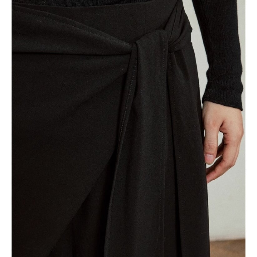 アシンメトリーなラップデザインが目を引くワイドフレアパンツ。