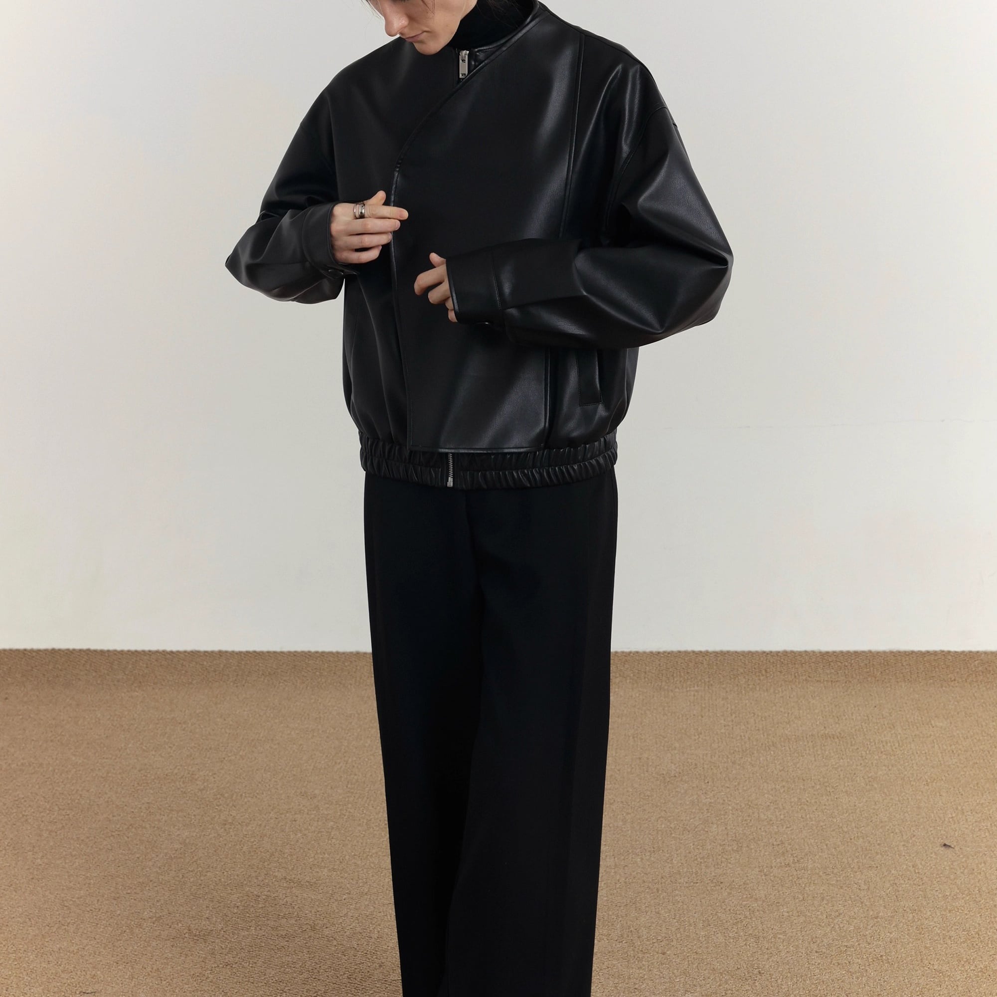 アシンメトリーフェイクレザーラップブルゾン 1color MOJ0204