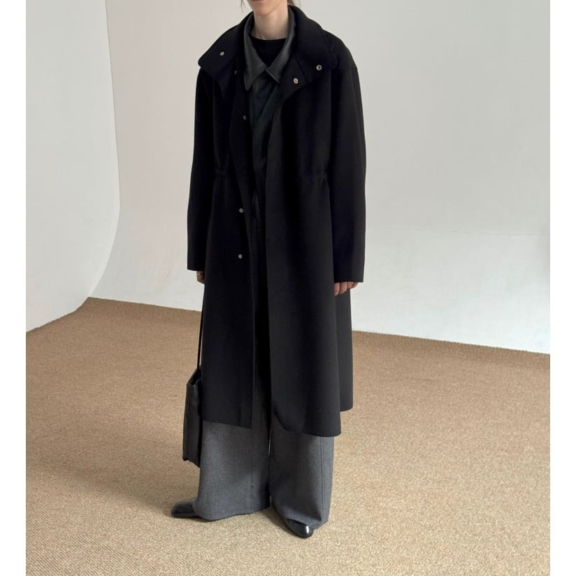 ドローストリングスタンドカラーロングコート 2color MOJ0250