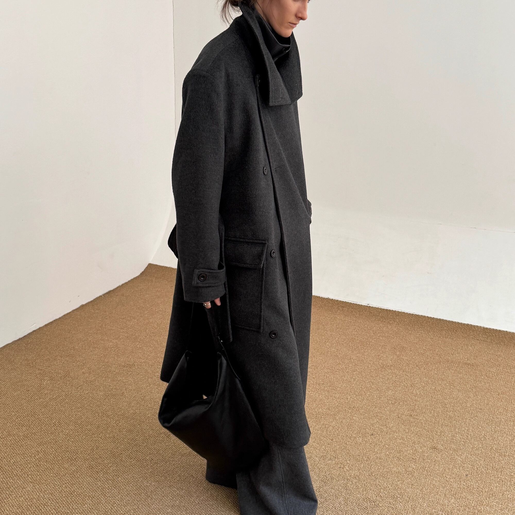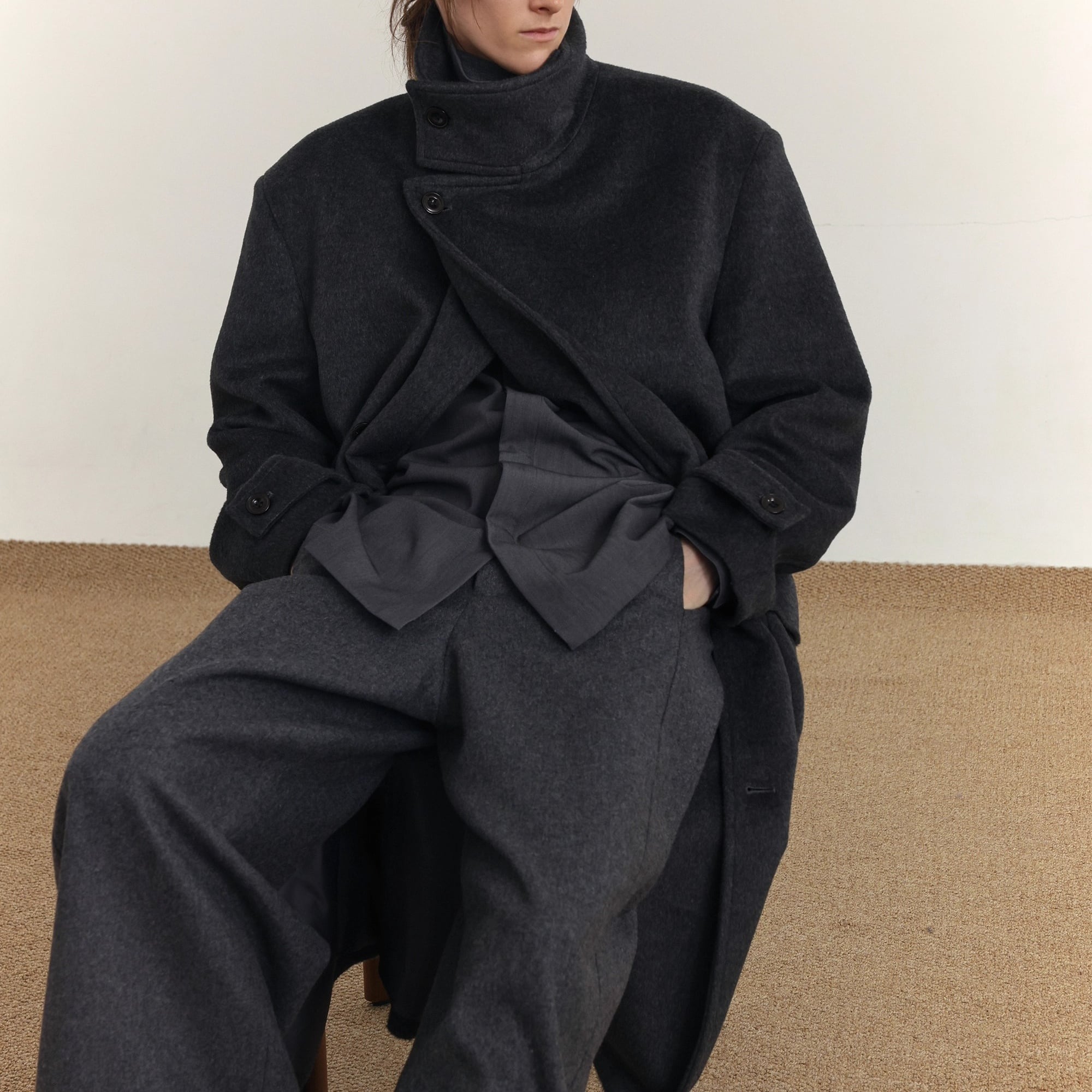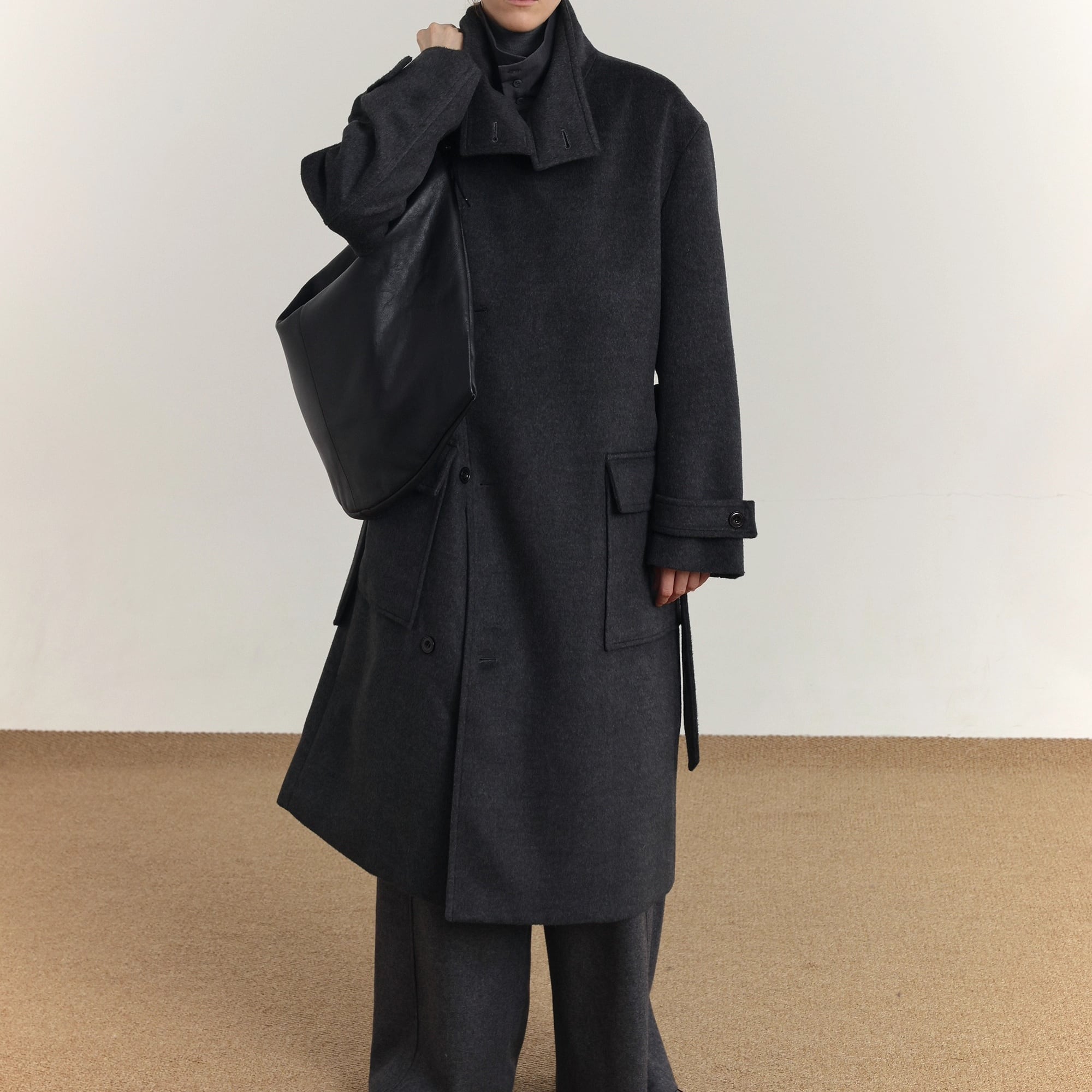 スタンドカラーが特徴的なロングコート。首元を暖かく包み込み、洗練された印象を与えます。付属のベルトでウエストマークすれば、シルエットにメリハリが生まれ、スタイルアップ効果も期待できます。普段使いはもちろん、オフィスシーンにもおすすめです。