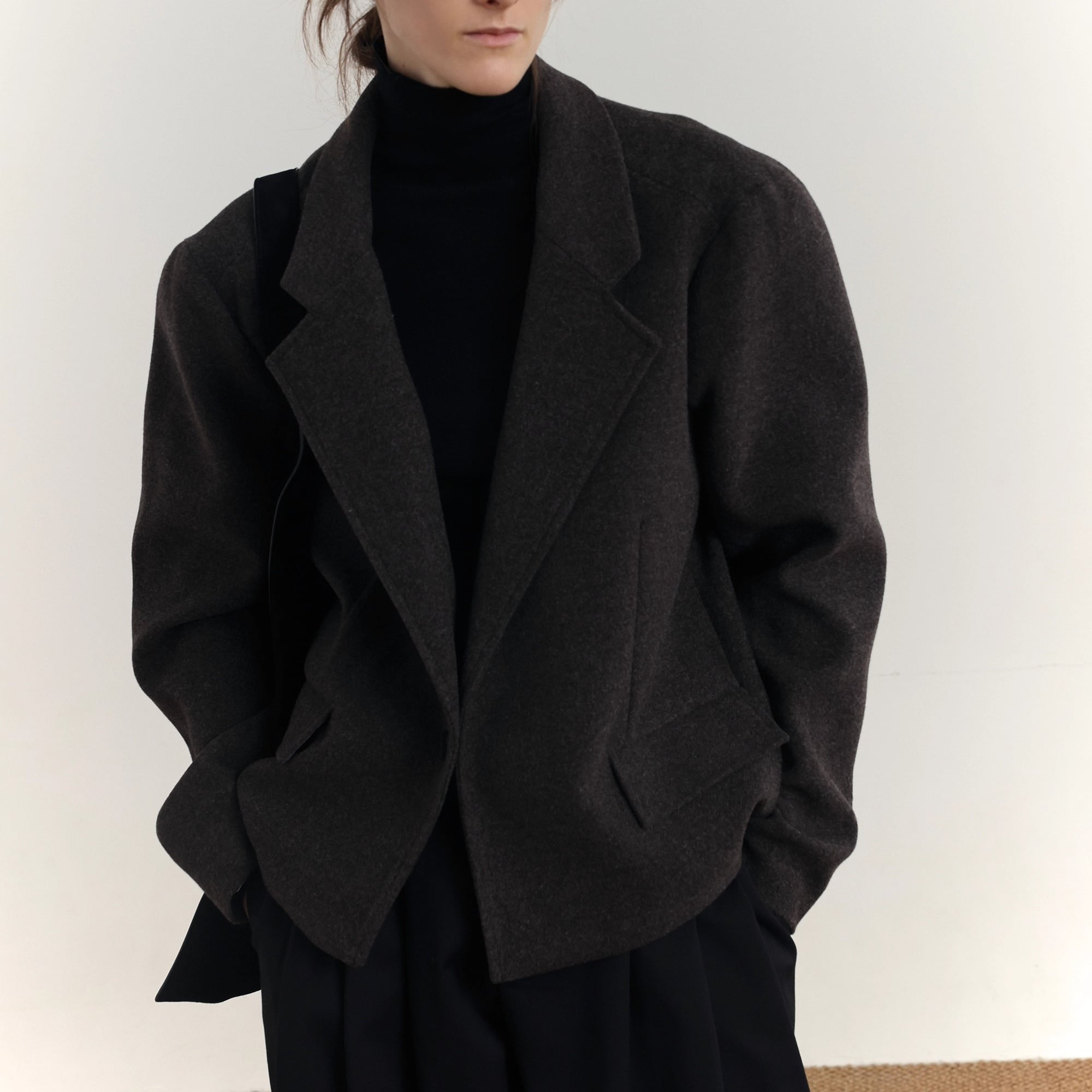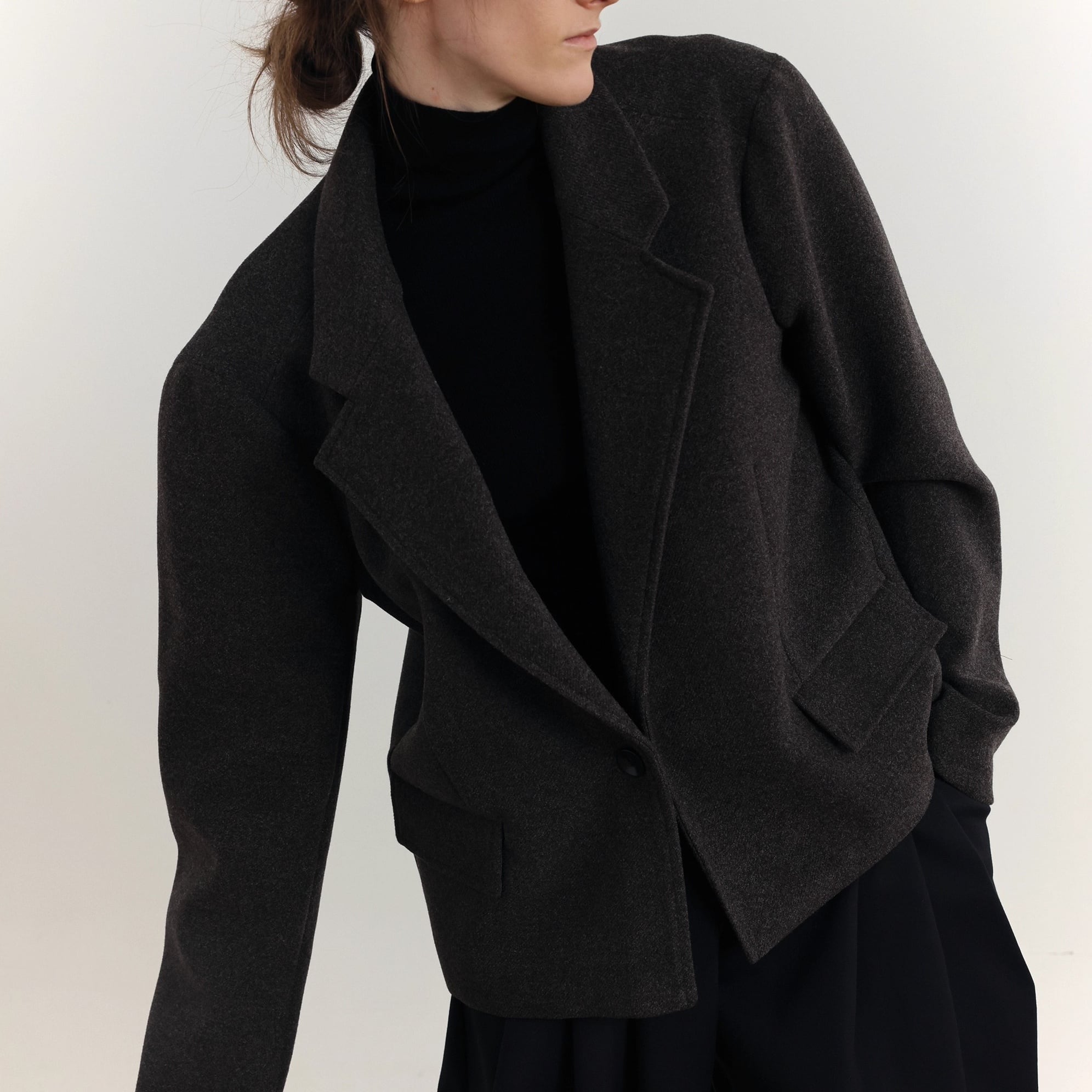 ゆったりとしたシルエットで、こなれ感を演出する長袖ジャケット。