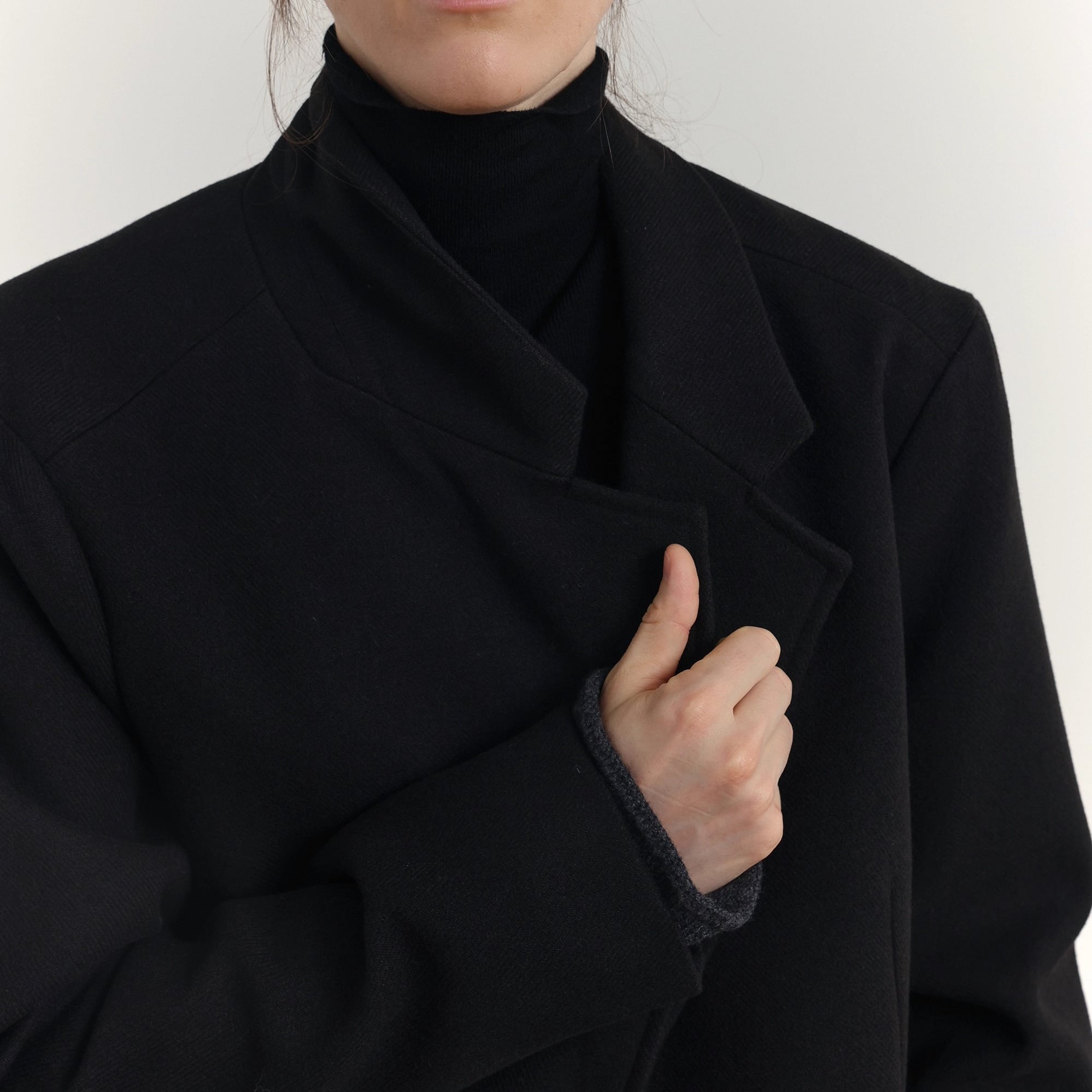 ダブルブレストのデザインが、クラシカルで上品な印象を与えます。