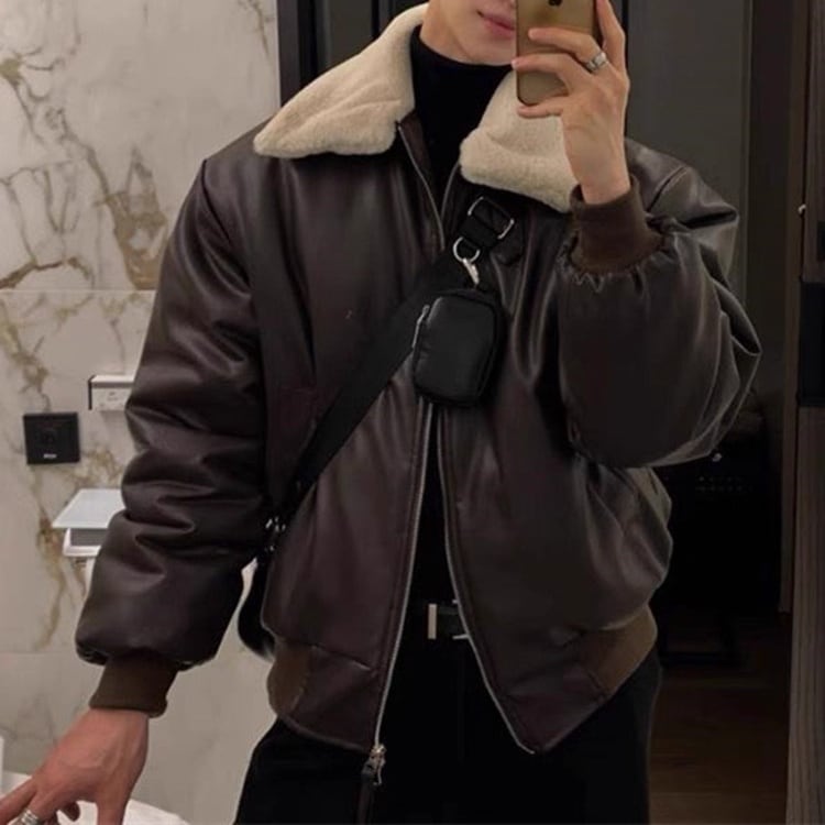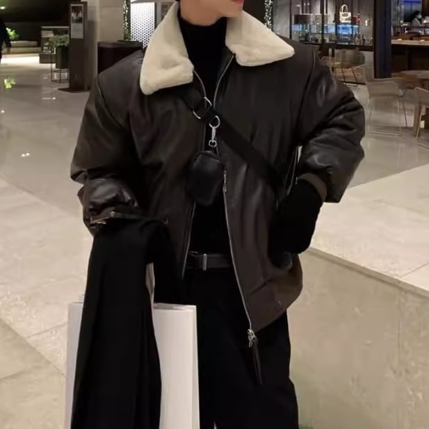 ボア襟フェイクレザージャケット 2color MOJ0258