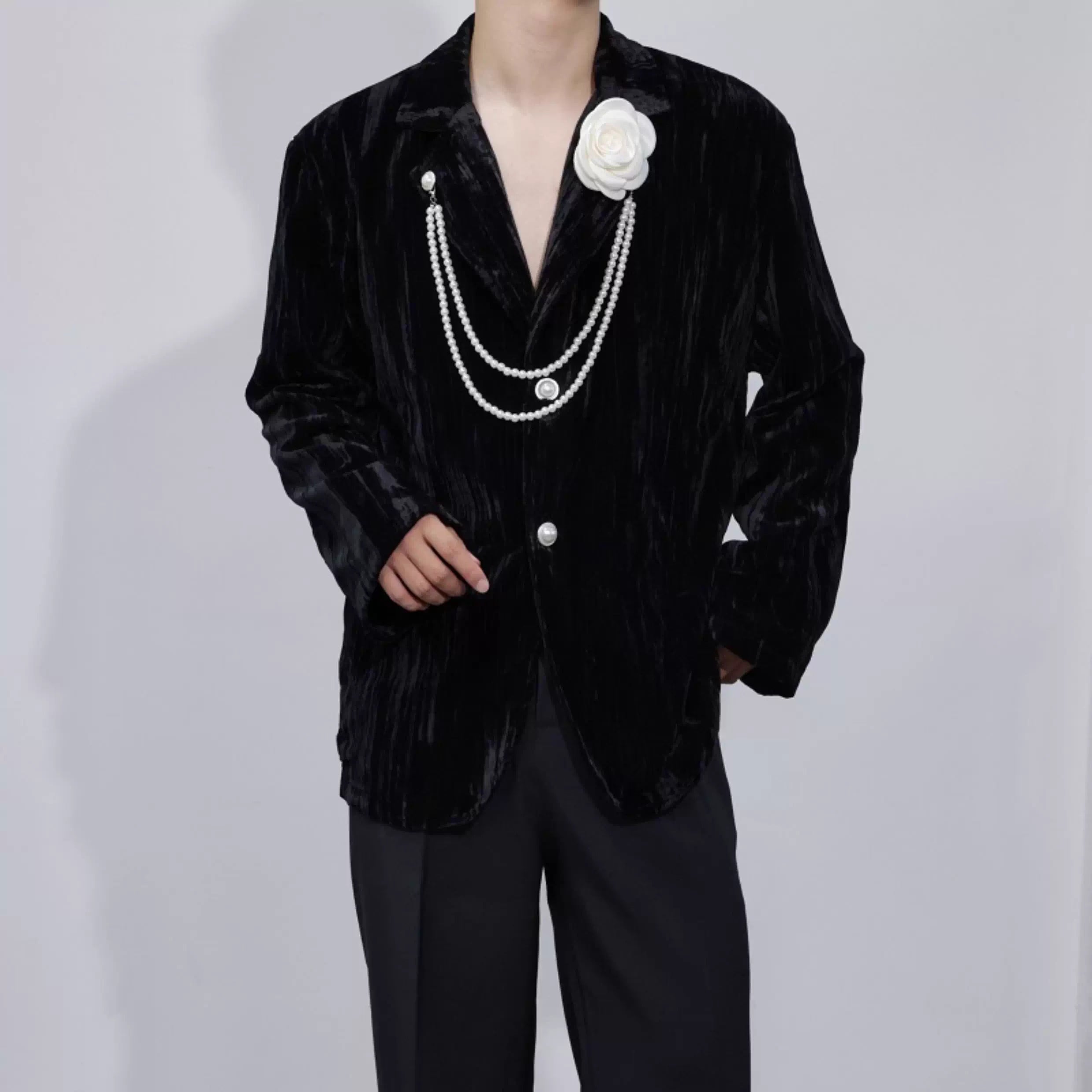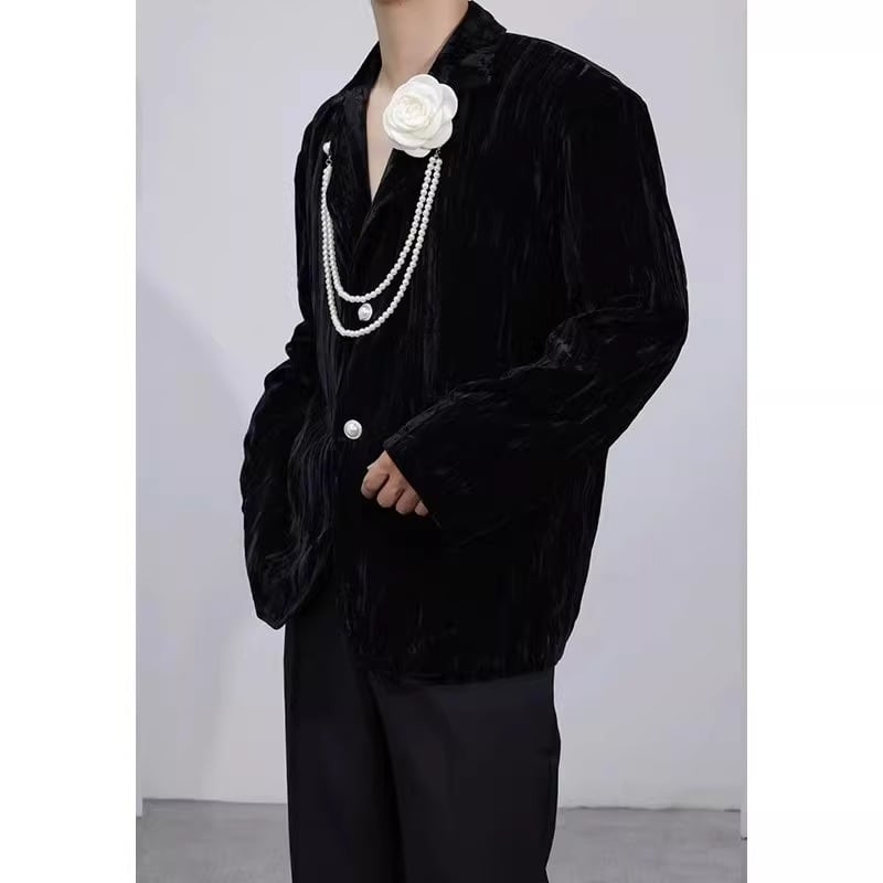 胸元を華やかに飾る、パールとフラワーモチーフが特徴的なジャケット。シンプルな装いにプラスするだけで、洗練された雰囲気を演出します。パーティーシーンや特別な日の装いに最適で、周囲と差をつけるスタイリングが可能です。