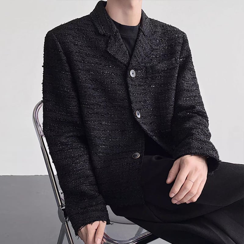 ボタンフロント 腰丈 長袖 ツイード風 ジャケット 2color MOJ0185