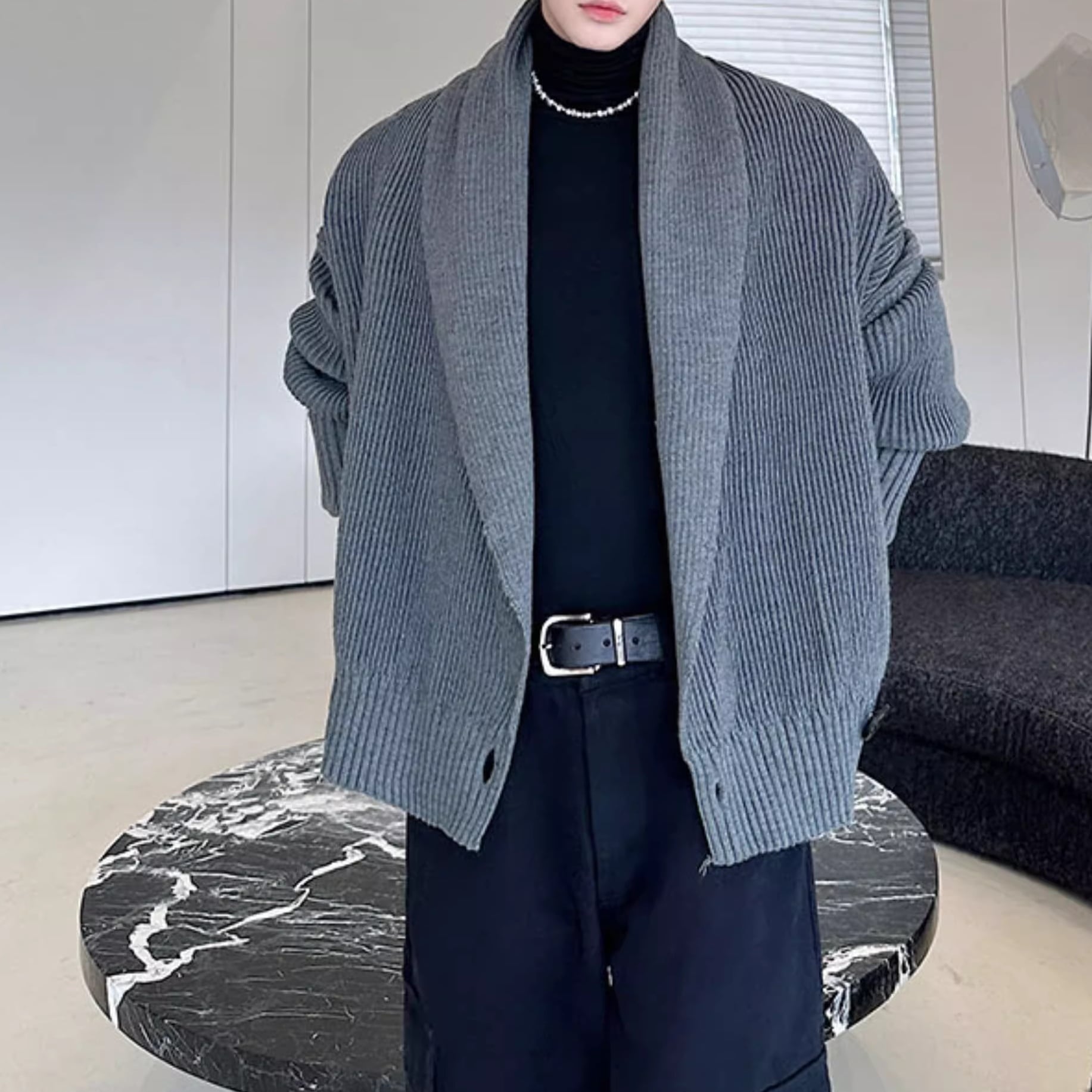 ゆったりとしたシルエットが魅力のショートニットカーディガン。ショールカラーのデザインが、首元にさりげないアクセントをプラスします。普段使いはもちろん、少し肌寒い日の羽織としても活躍し、カジュアルながらも洗練された印象を与えます。