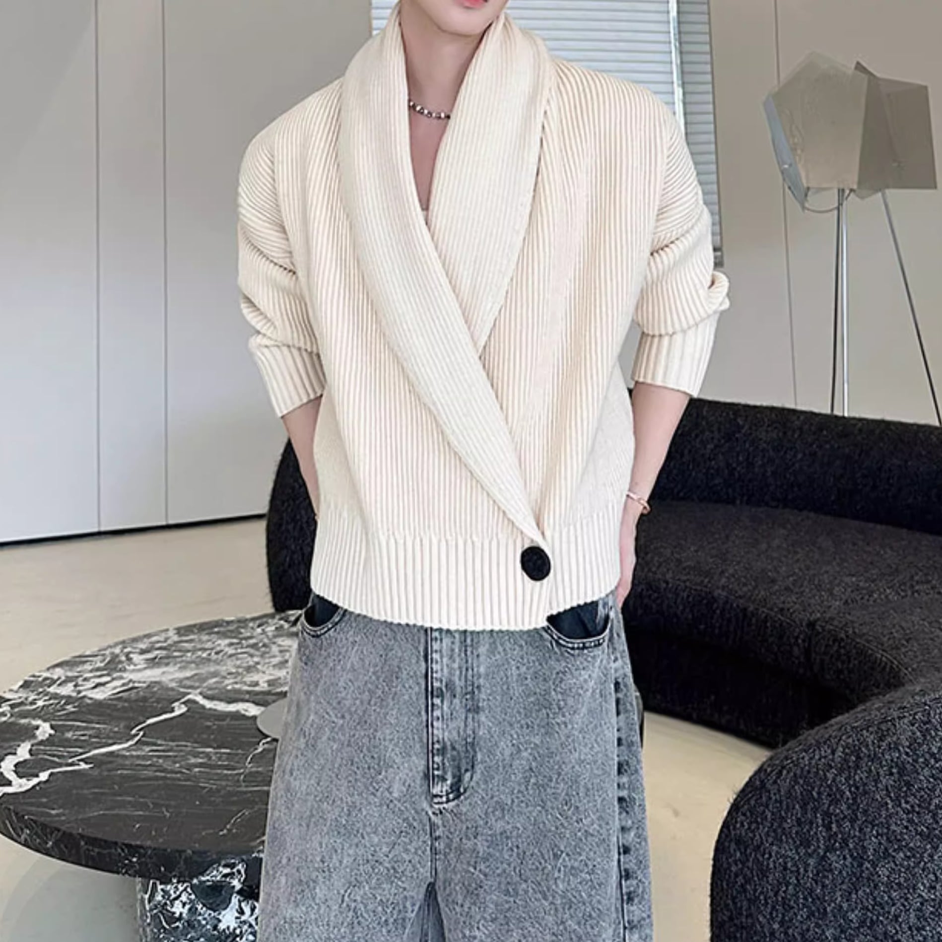 ショールカラーデザイン ショートニットカーディガン 4color MOJ0300
