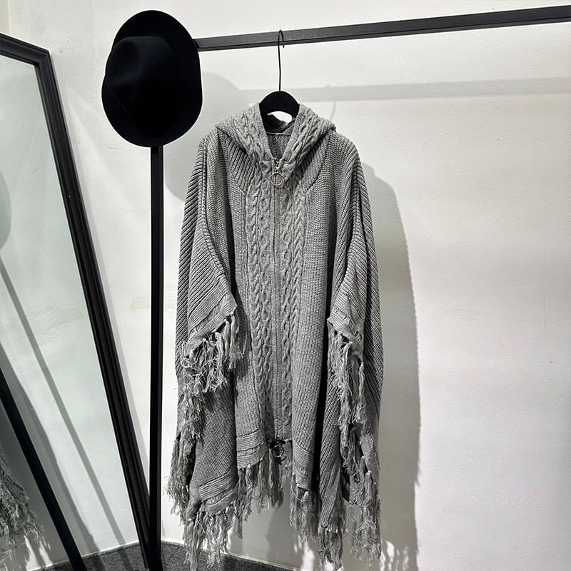フード付きフリンジケーブルニットポンチョ 1color MOJ0305
