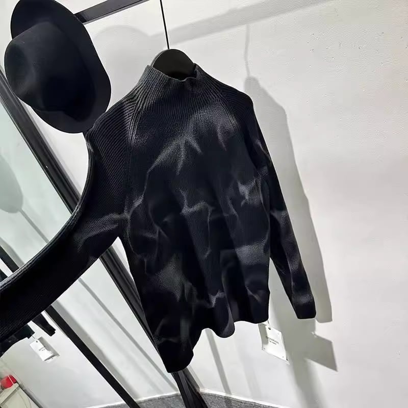 落ち着いた色合いの中に浮かび上がるスモークアートが、個性を引き立てるリブニット。