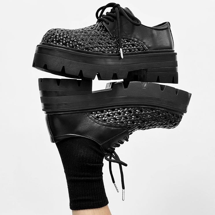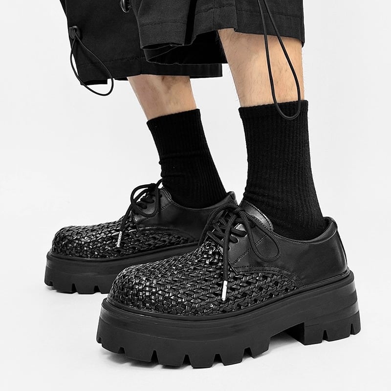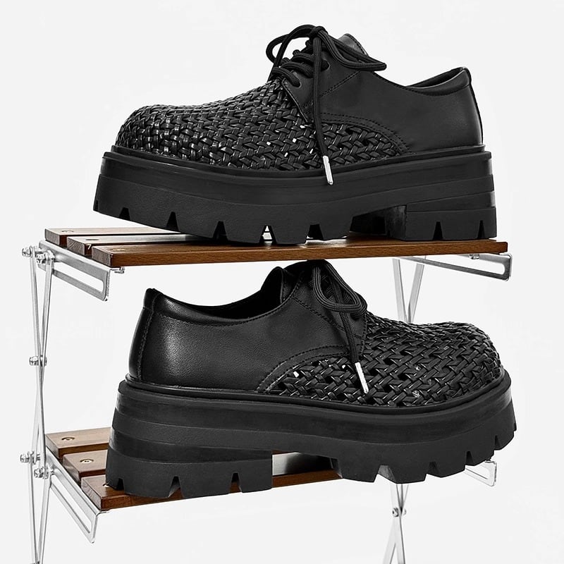 特徴的な編み込みデザインが、スタイリングに奥行きを与えます。