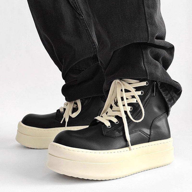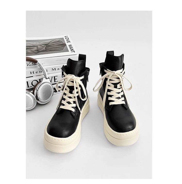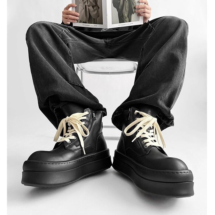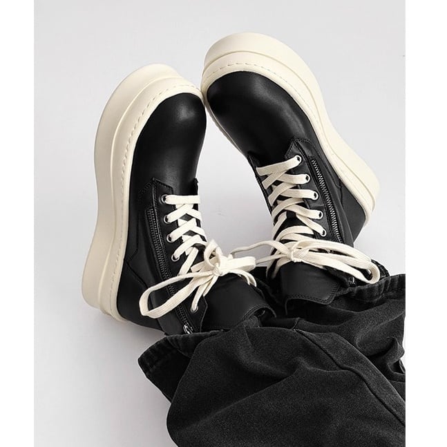 ジップアップ 厚底 レースアップ ハイカット スニーカー 8color MSH0015