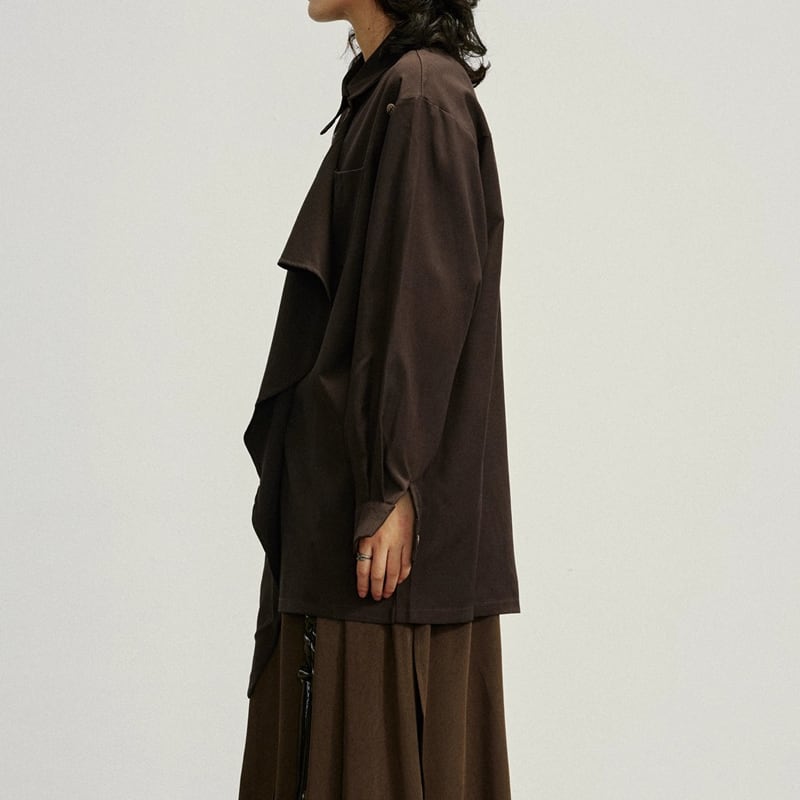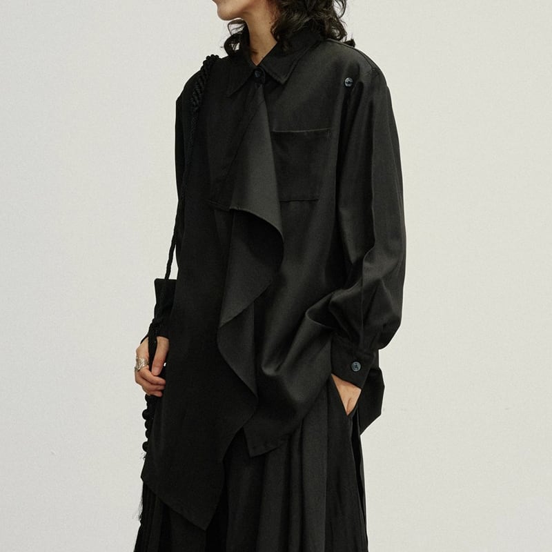 アシンメトリー 長袖 ヒップ丈 シャツ 3color MTO0459