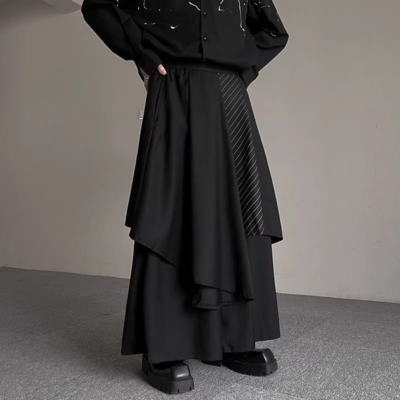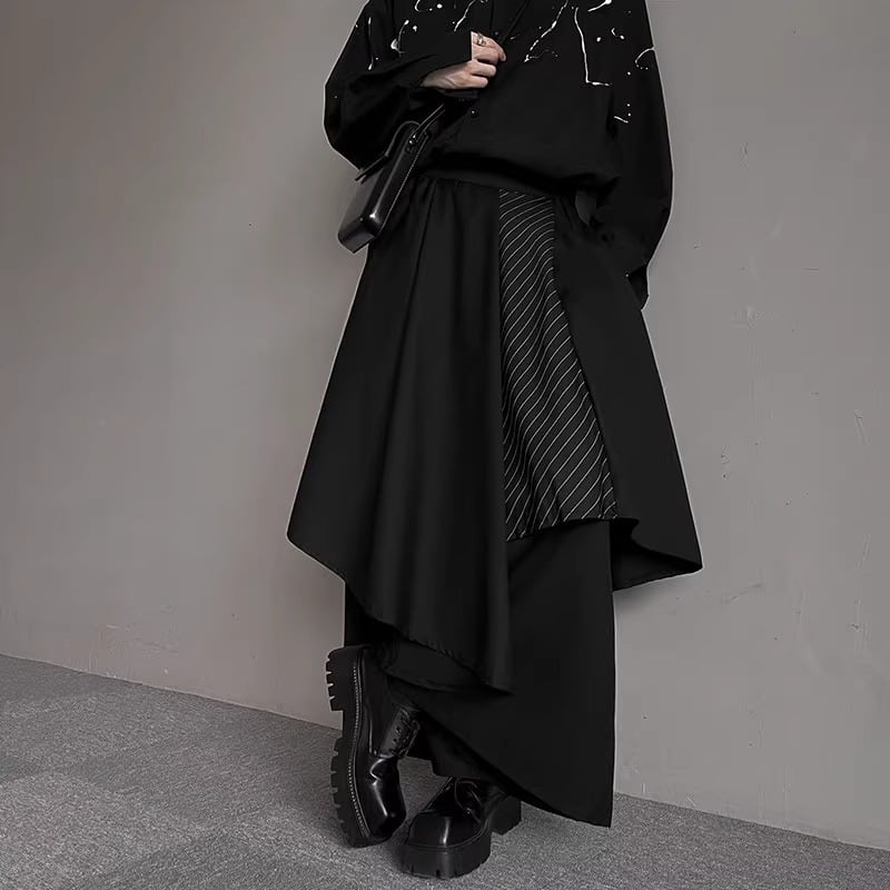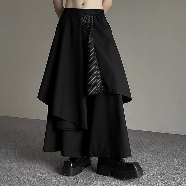 ストライプ切替アシンメトリーラップワイドパンツ 1color MPA0154