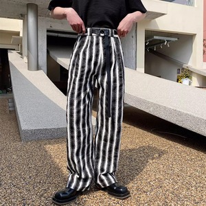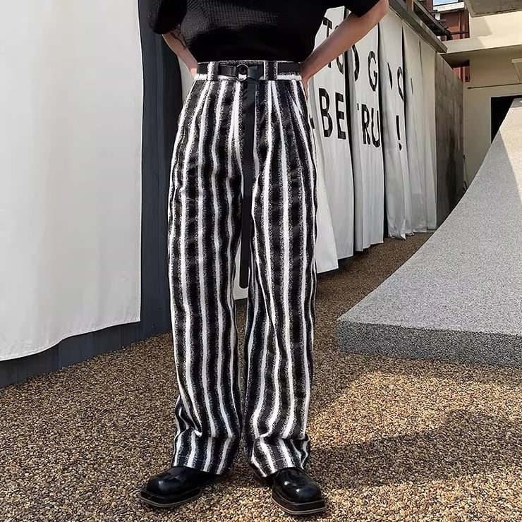 ストライプ柄が目を引くワイドパンツで、個性を演出。普段使いはもちろん、ちょっとしたお出かけにも最適です。シンプルなトップスと合わせるだけで、洗練されたスタイリングが完成します。