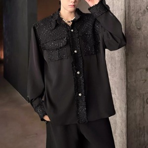 スパンコール 長袖 シャツカラー シャツ 1color MTO0473