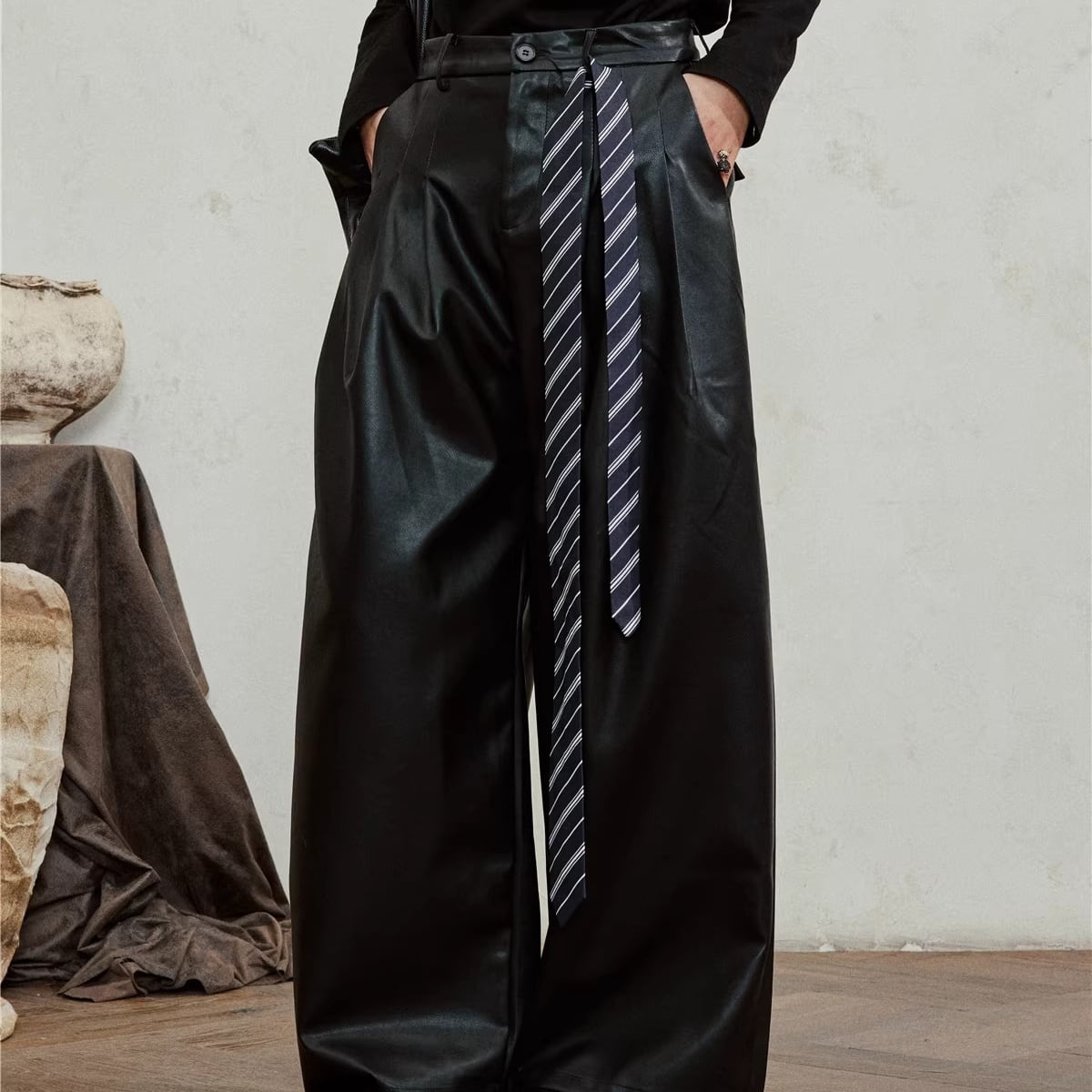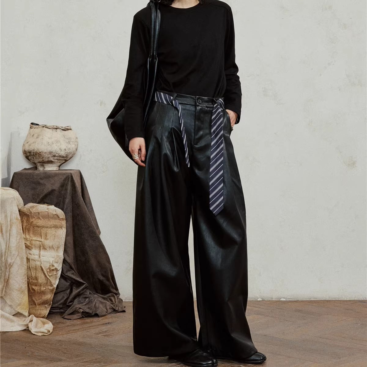 タイ付き ワイド フェイクレザー パンツ 1color MPA0244